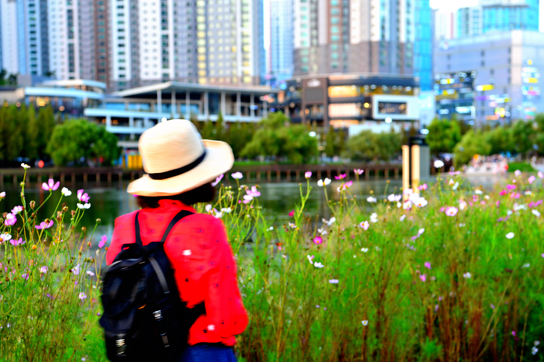 오산대역 옆의 백일홍 꽃밭을 돌아보고 난 후 찾아간 동탄 호수공원이다.