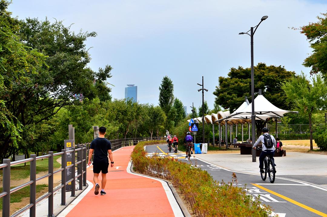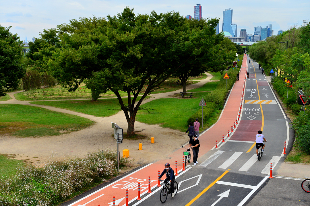 여의도 방면으로 이어지는 공원 모습이다.