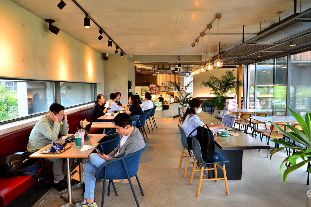 카페의 외부 공간에 자리를 잡았다.
