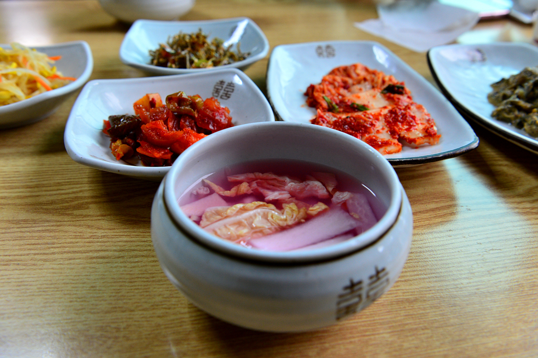 기본 찬 모습인데 시원한 동치미도 곁들어져 있다.