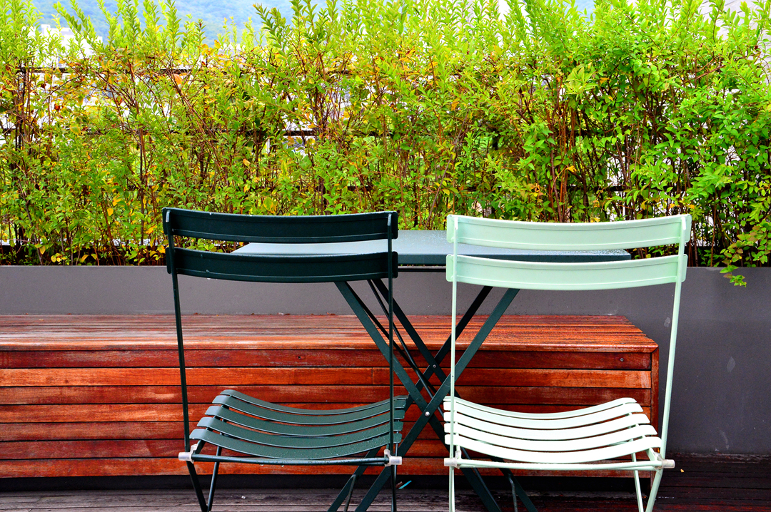 야외 데크에서 커피를 즐기기로 했다.