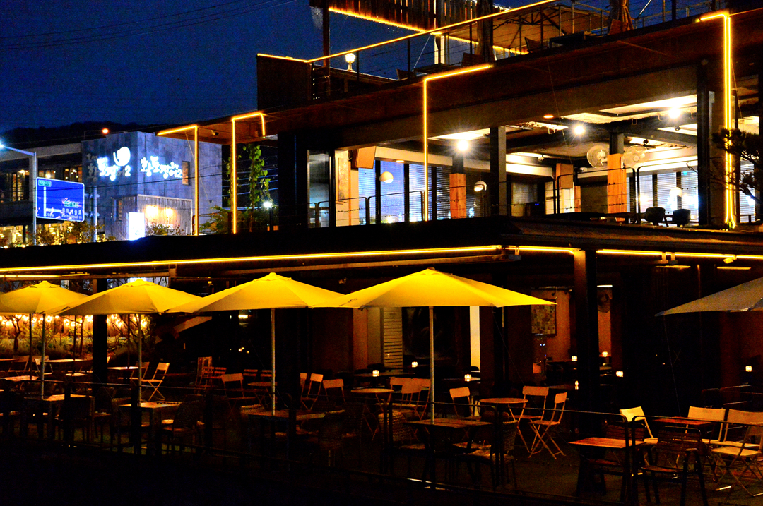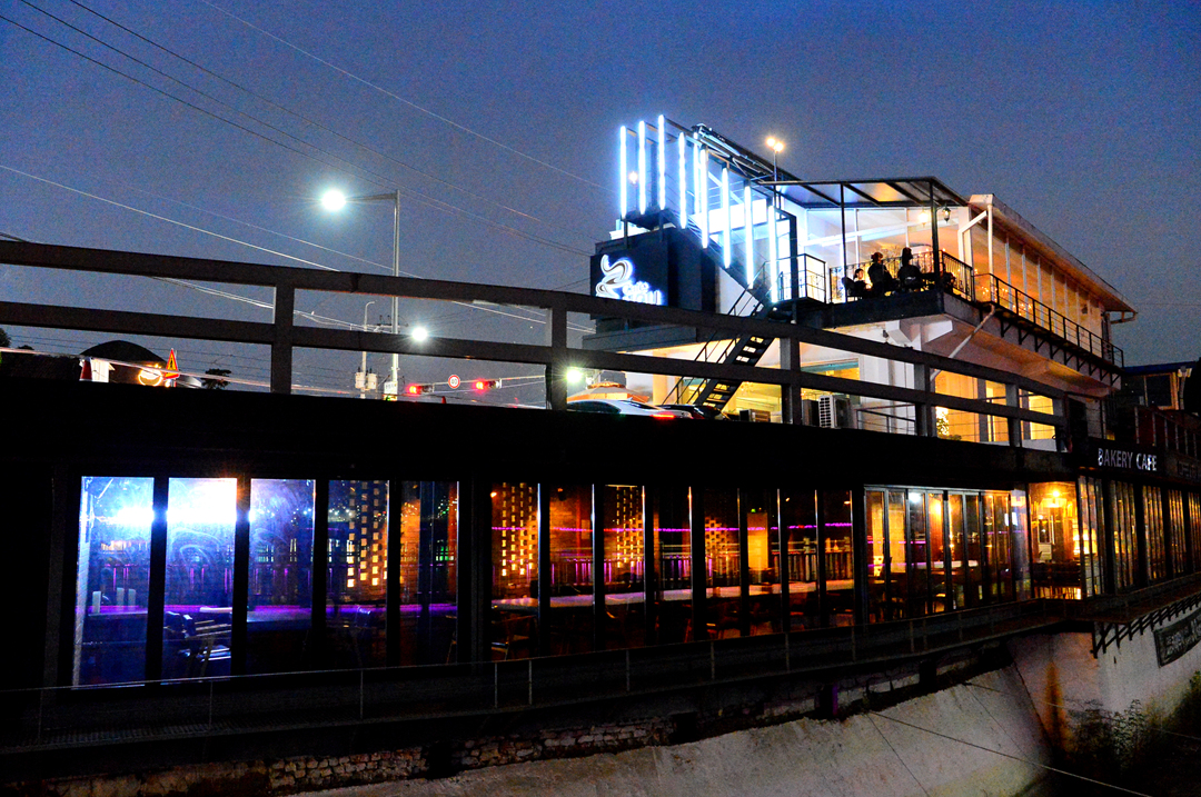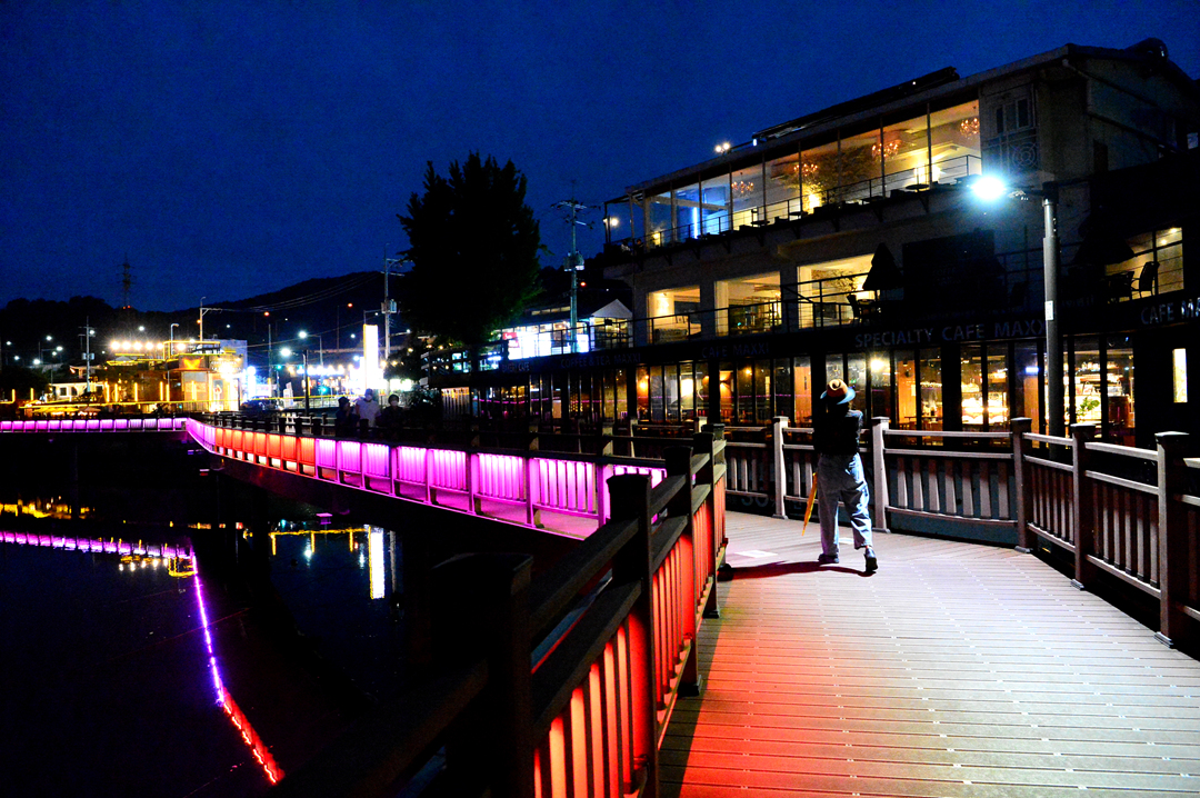호수를 마주하고 있는 카페와 음식점들의 화려한 야경이다.