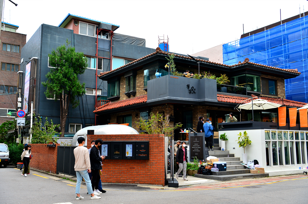 깔끔한 카페로 변신한 과거의 주택 모습이다.