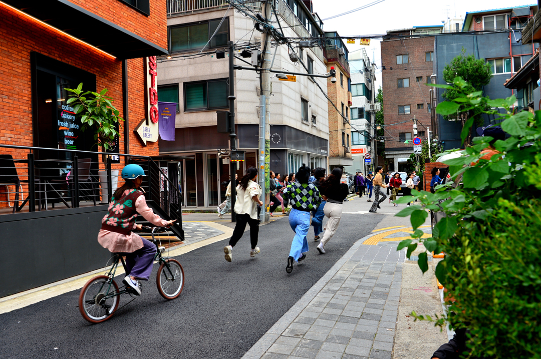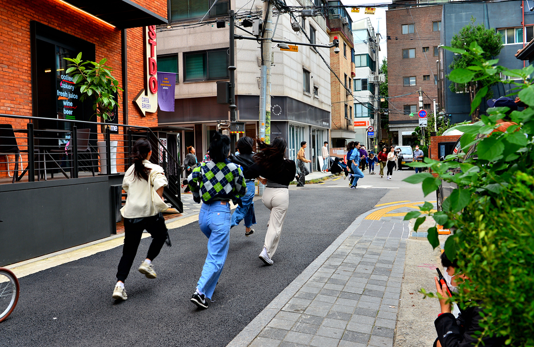 이 골목을 질주하고 있는 젊은 처자들은 뭐야~?