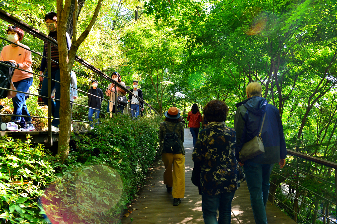 이끼원 옆 계곡을 가로지르는 구름다리가 놓여 있는데 약속의 다리라고 한다.