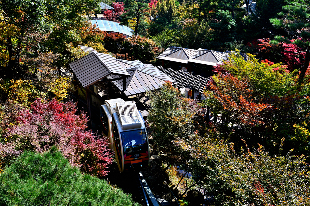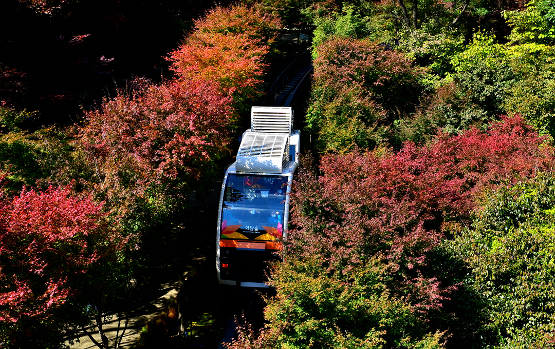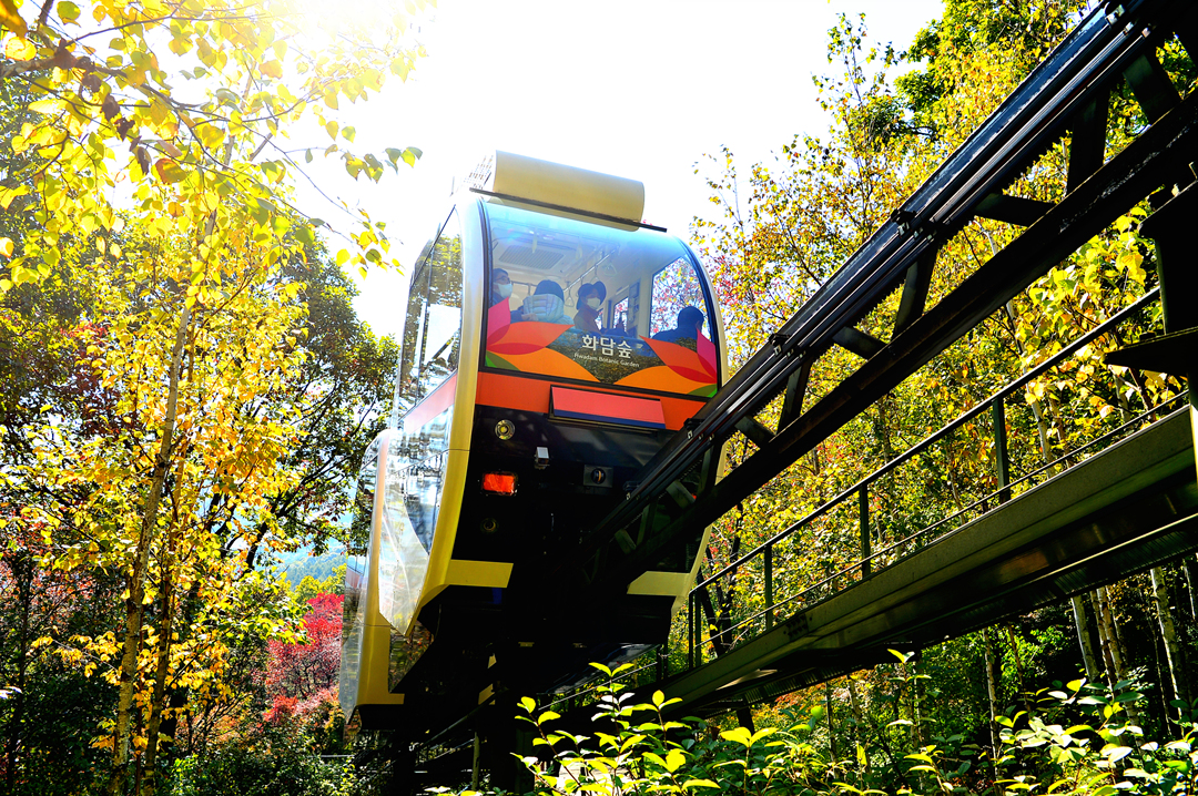울창한 숲을 헤집고 나오는 모노레일도 아름다운 풍경이 되어 있다.