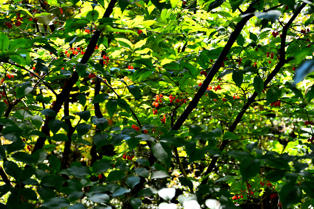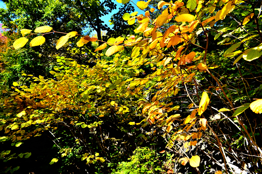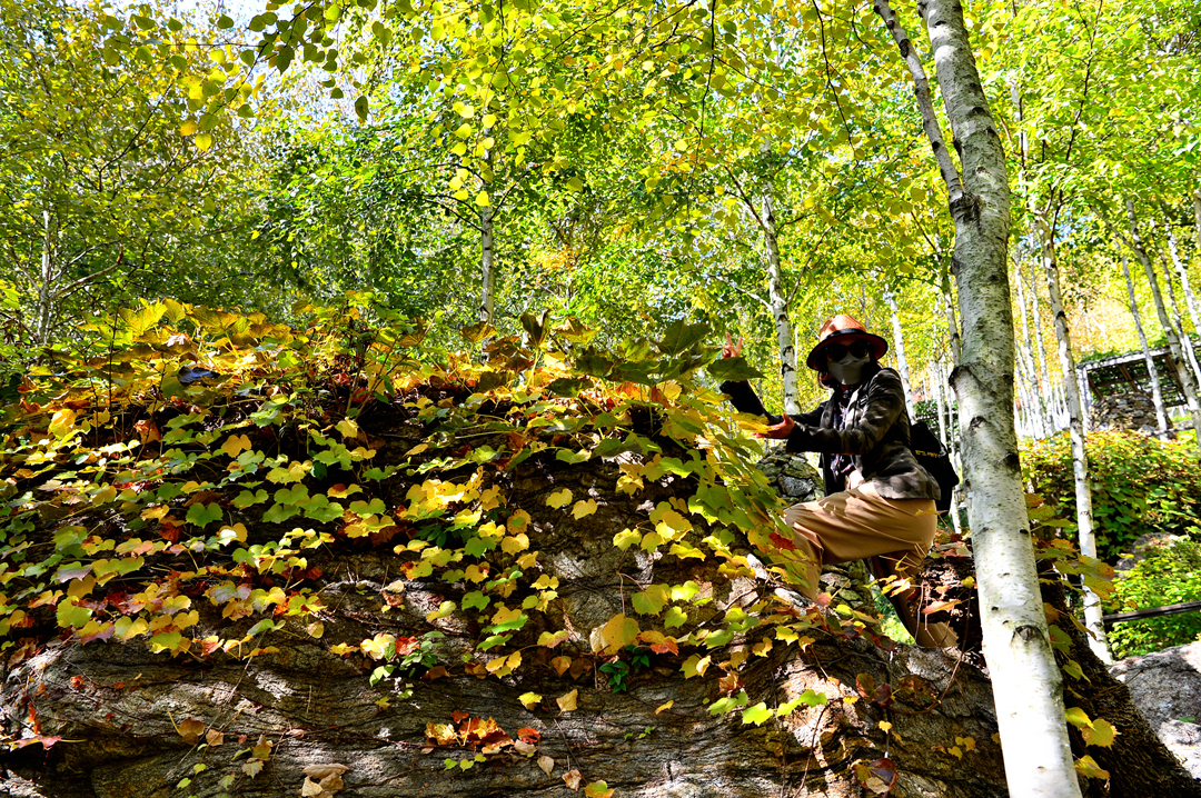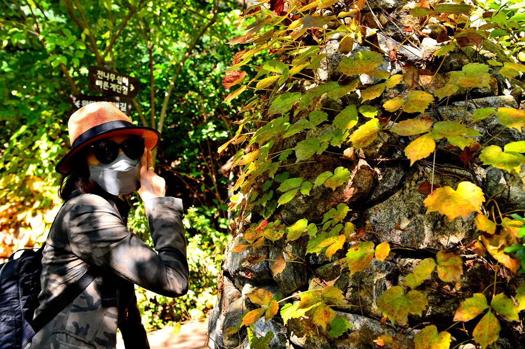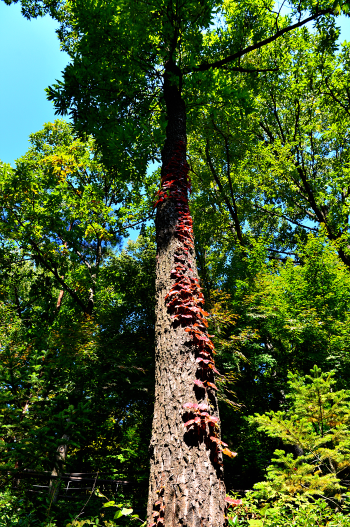 커다란 나무를 타고 오르는 담쟁이도 빨갛게 옷을 갈아입고 있다.