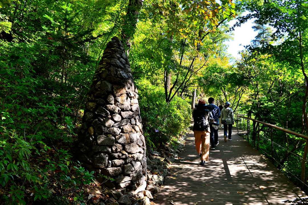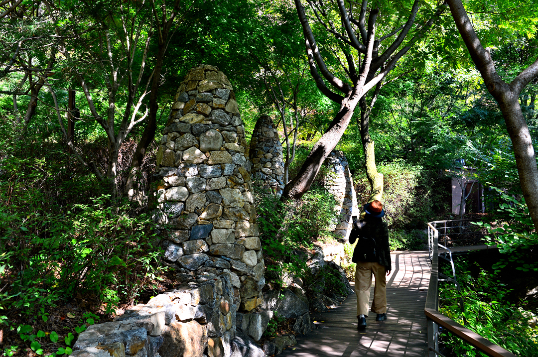 산책길 옆에 쌓아 놓은 돌탑이 멋지다.