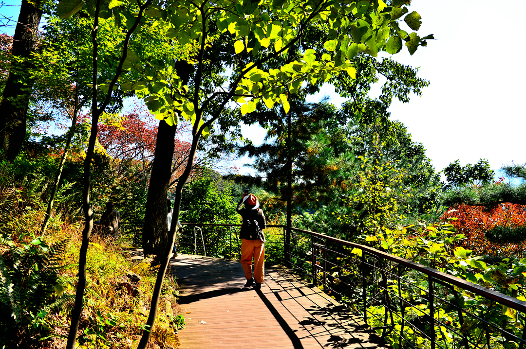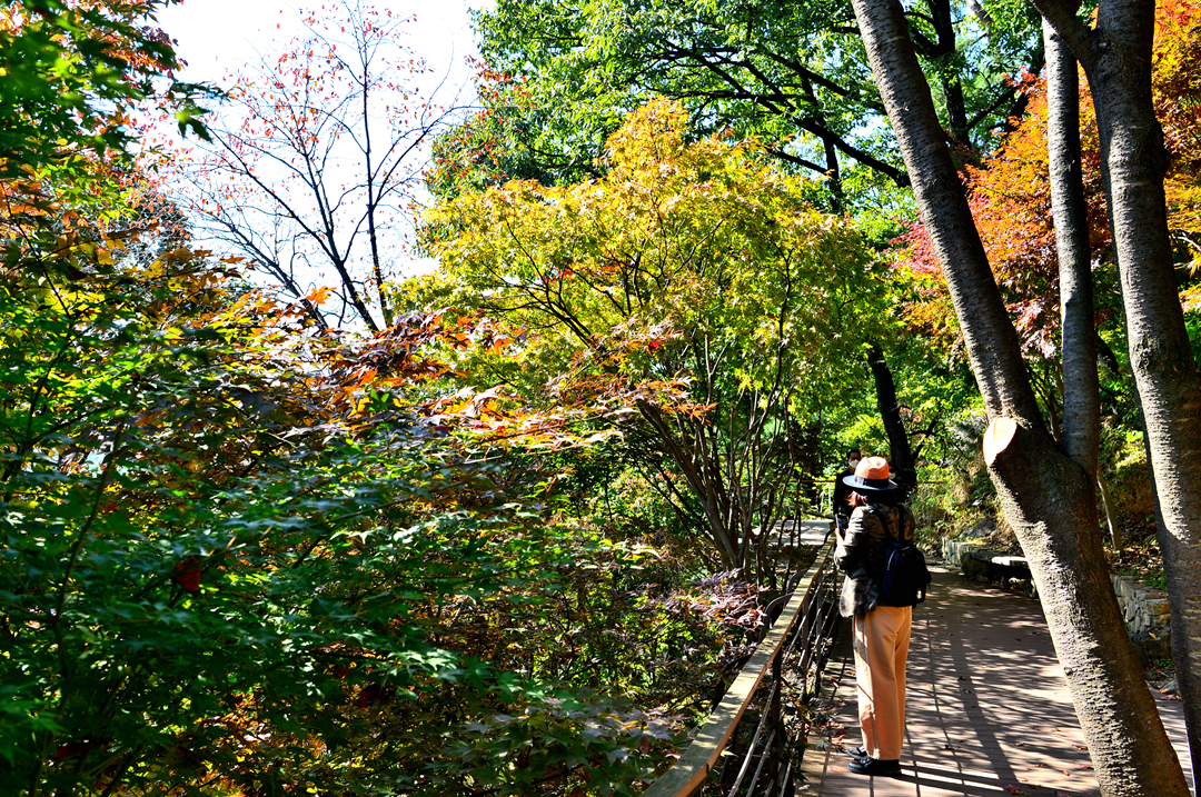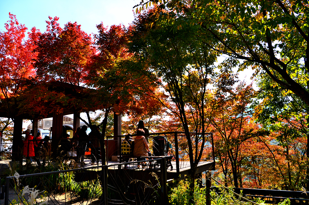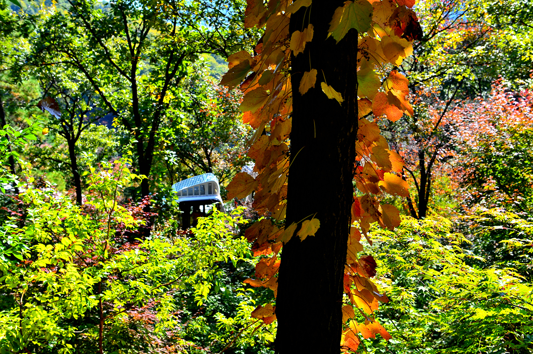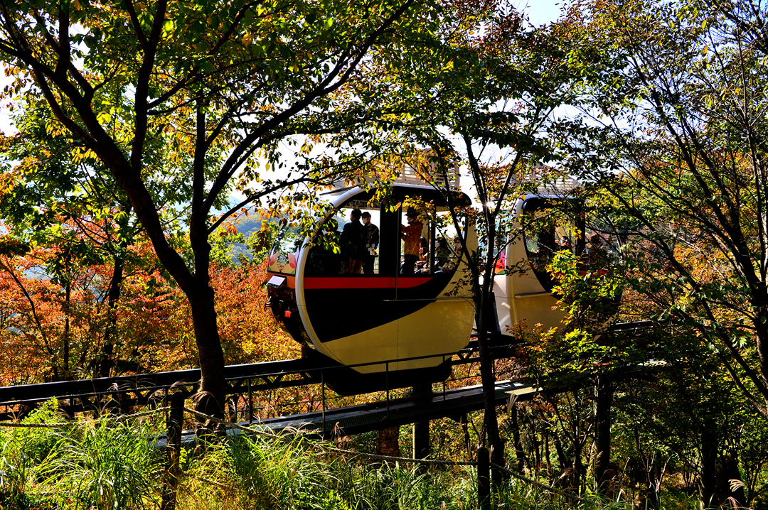 단풍나무 사이로 다시 빼꼼히 모습을 드러낸 모노레일~
