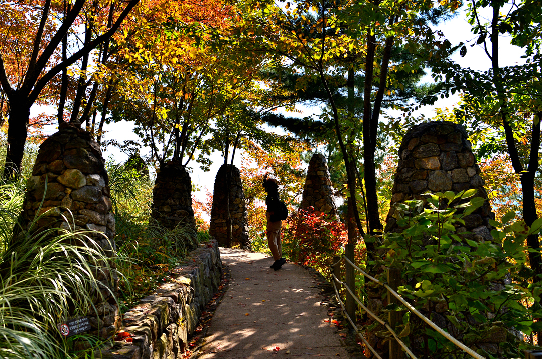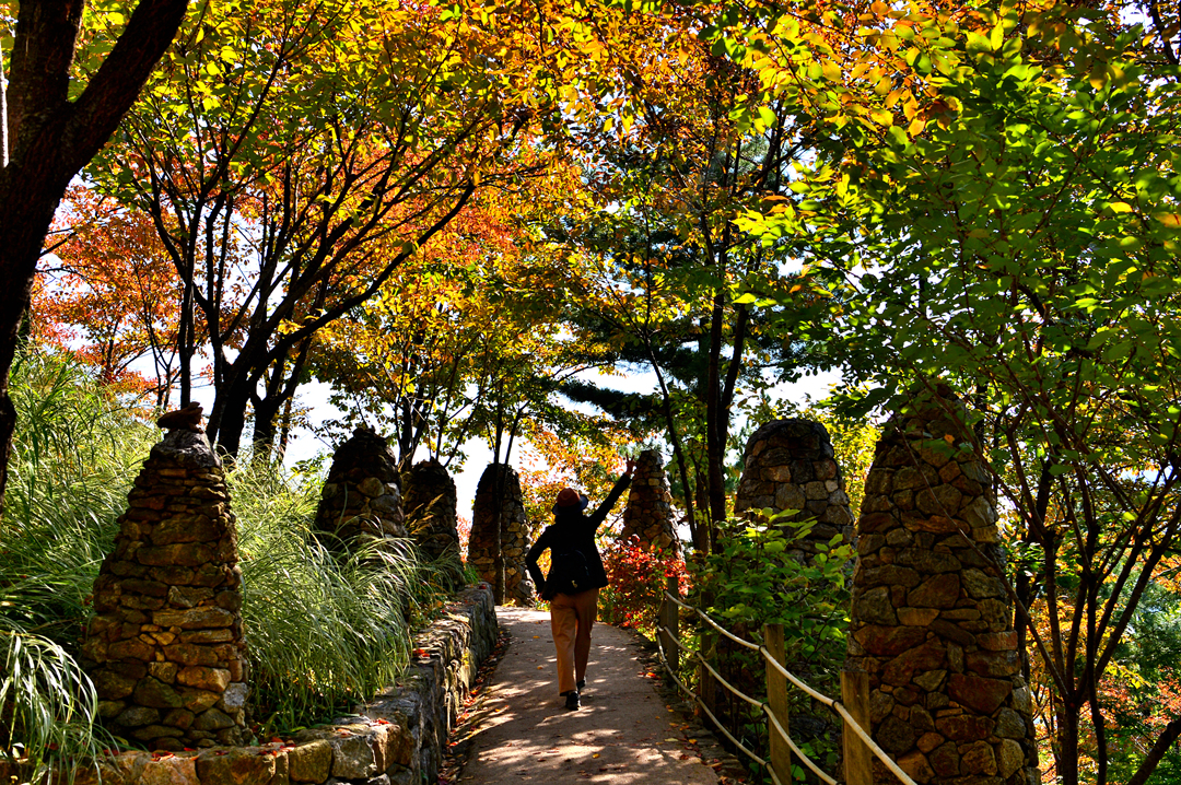 산책로 주위에 쌓아놓은 돌탑들도 특별한 정취를 선사해 준다.