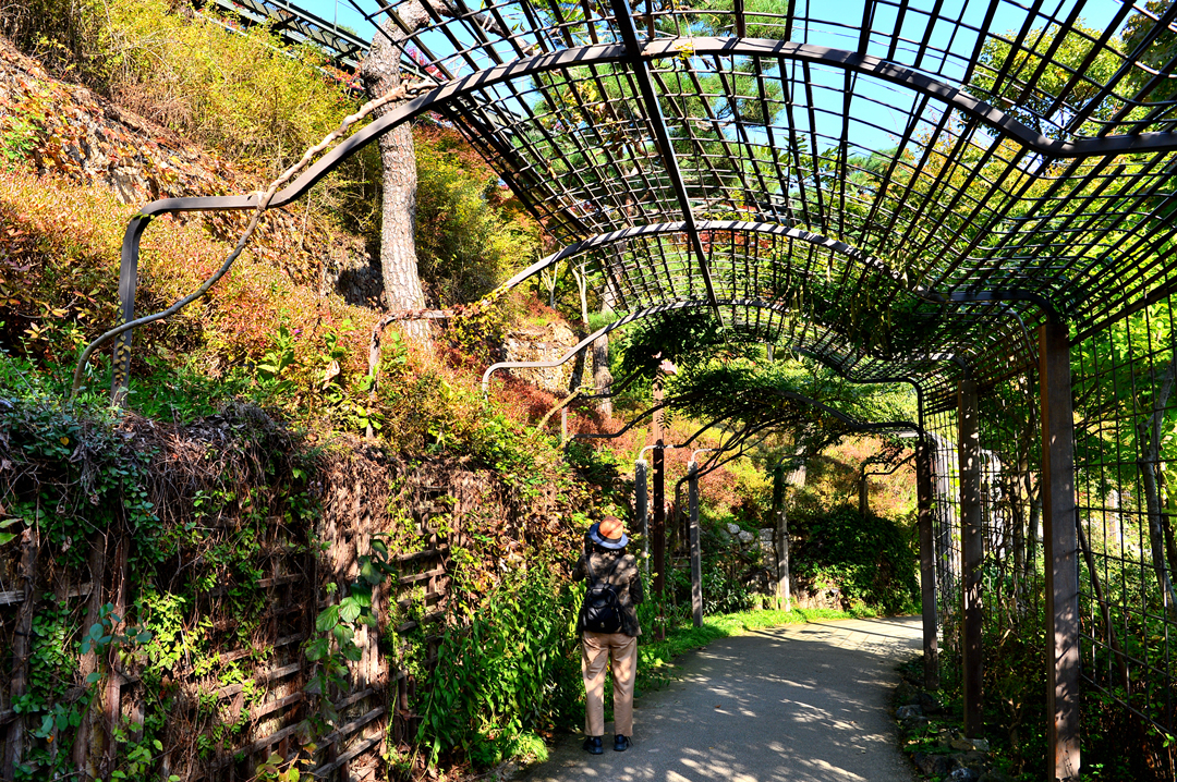 모노레일 궤도와 산책로가 연이어 모습을 드러내는 이곳이 각종 색채로 아름답게 장식된 색채원이다.