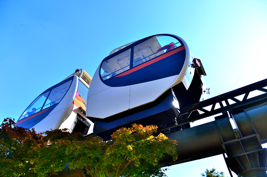 손을 뻗으면 닿을 것만 같이 가깝게 모노레일이 다가와 있다.