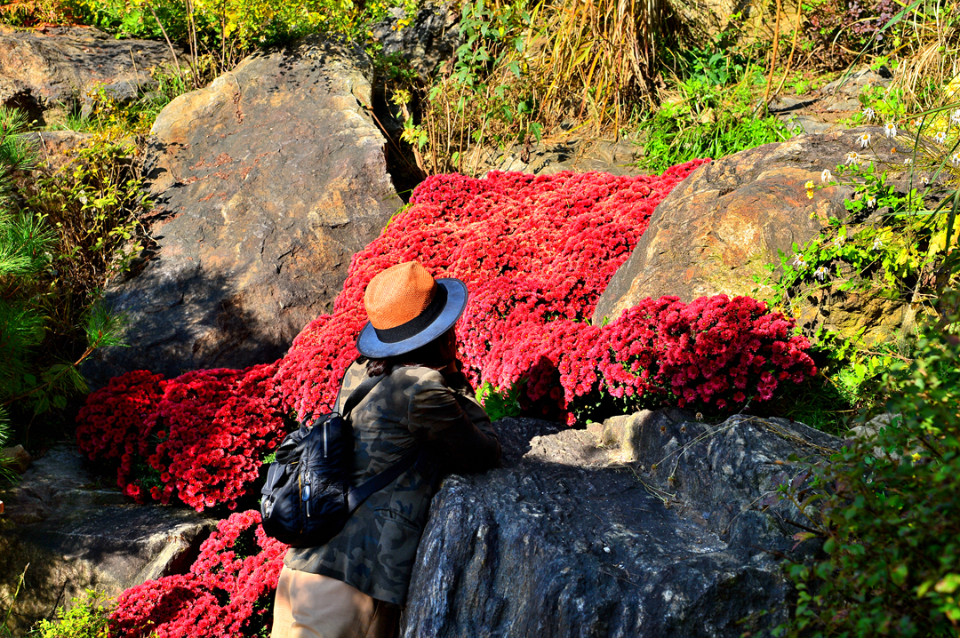 빨간 국화에 푹 빠지신 모습이다~ㅎ