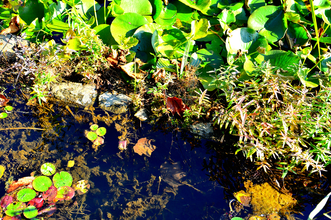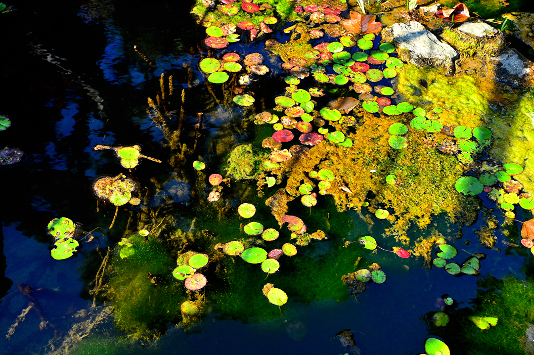물레방아 앞 작은 연못에 떠있는 수련의 잎들이 앙증맞고 귀엽기만 하다.