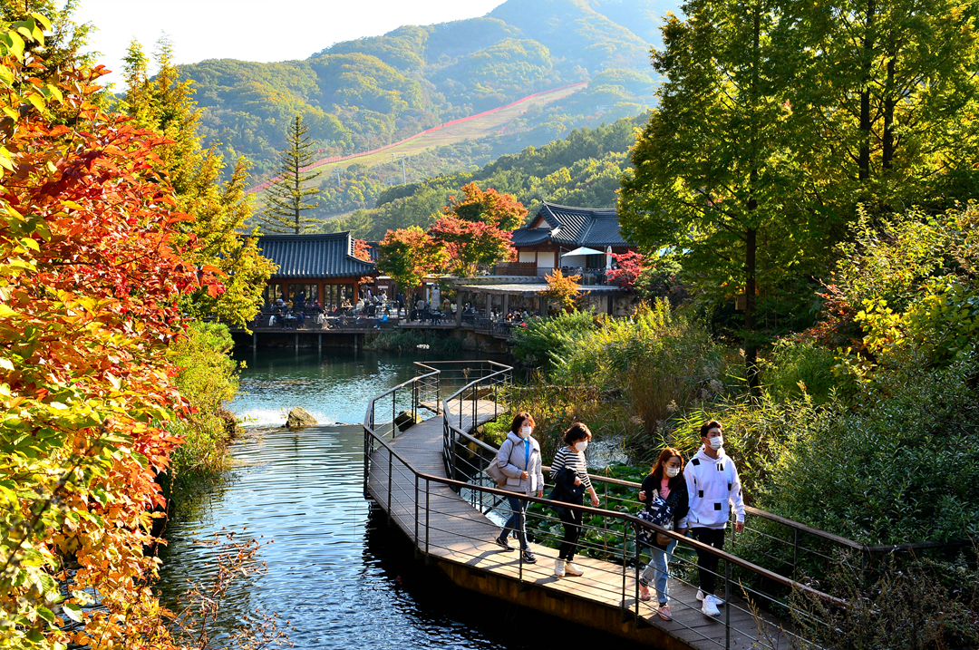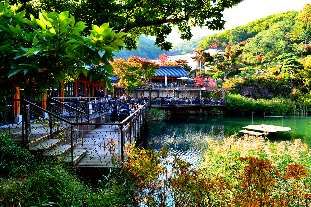 원앙 연못과 어우러진 주막과 카페 모습이 아름답기만 하다.