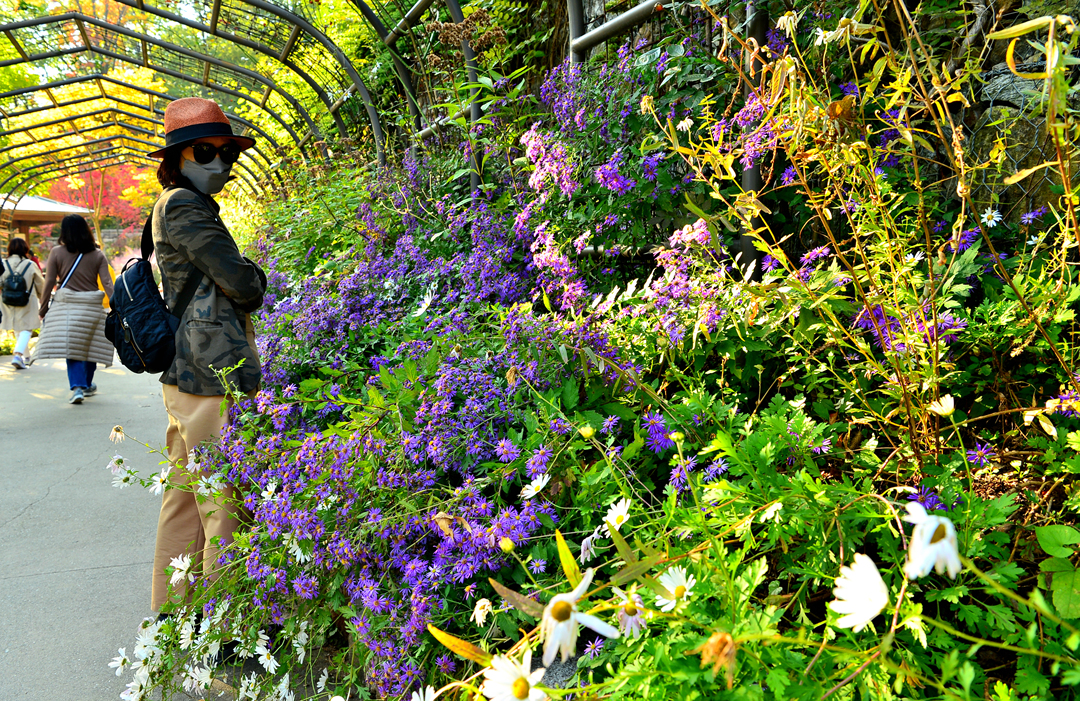 산책로 주변의 아름다운 꽃들을 구경하며 화담숲의 마지막 코스로 접어든다.