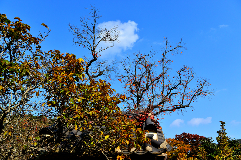 풍요로운 가을의 상징과도 같은 빨갛게 익어가는 감들이 여행의 정취를 더해 준다.