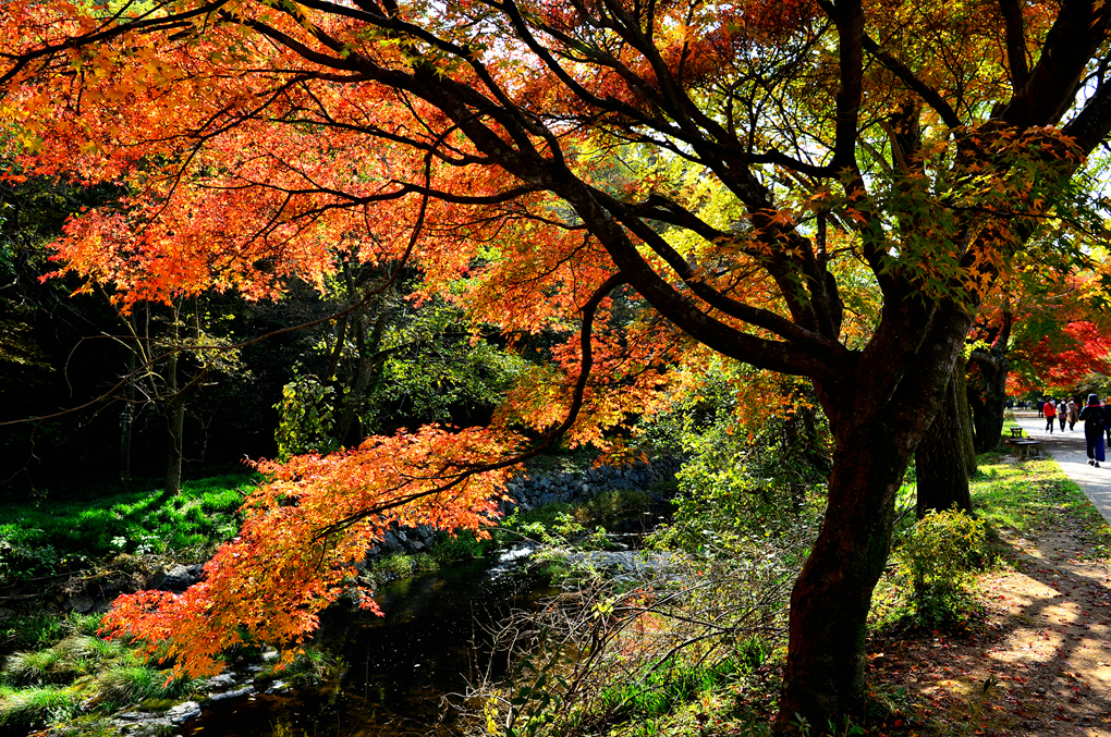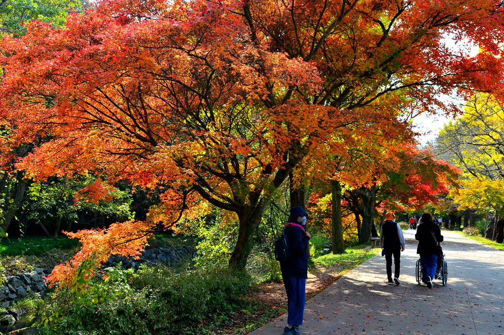 햇빛을 받은 단풍이 화사하게 빛을 내고 있다.