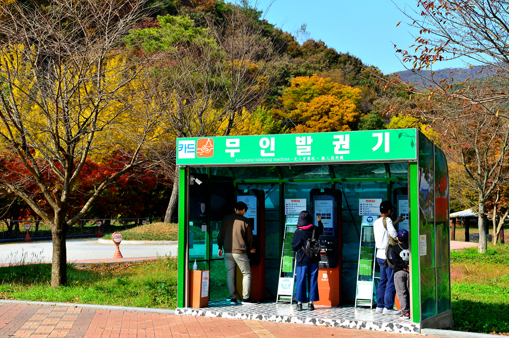 단풍에 취해 길을 걷다 보니 무인 발권기가 모습을 드러낸다.