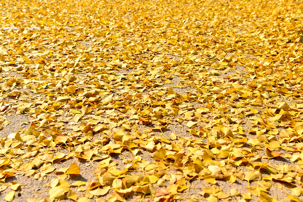 바닥을 노랗게 물들인 은행나무 잎이다.
