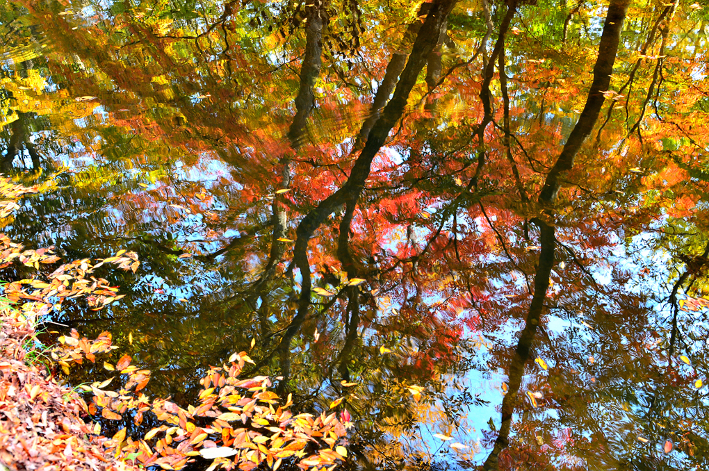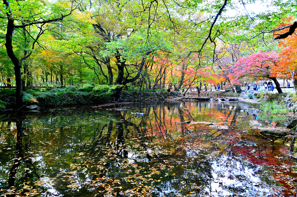 노란 은행나무 수면 아래의 잉어들이 아름답기만 하다.
