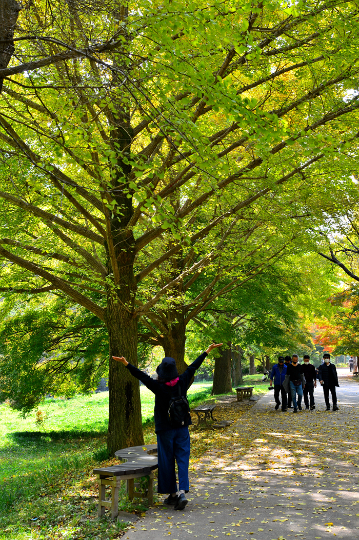 구경하기가 어려워 실망스러웠는데, 이곳은 마치 절정을 지난 듯 은행나무 아래가 온통 노란 은행나무 낙엽으로