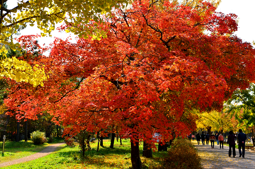 거대한 가지들에 매달린 단풍이 정말 아름답다.
