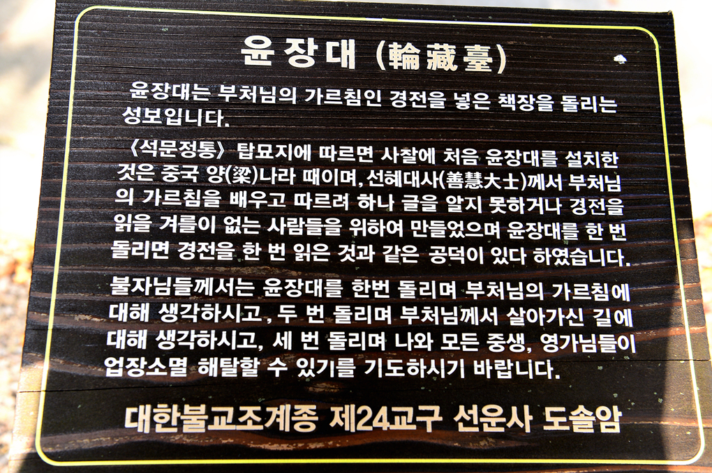 마애불과 도솔암 내원궁으로 올라가는 계단 사이에는 나한전이 있고, 그 나한전 옆의 윤장대 모습이다.