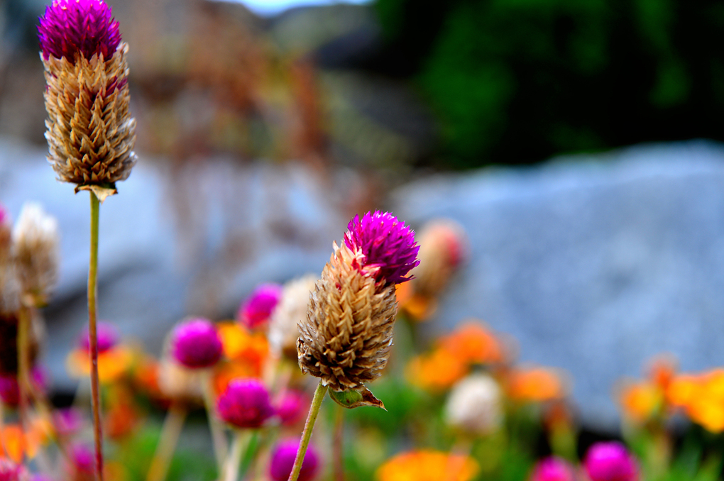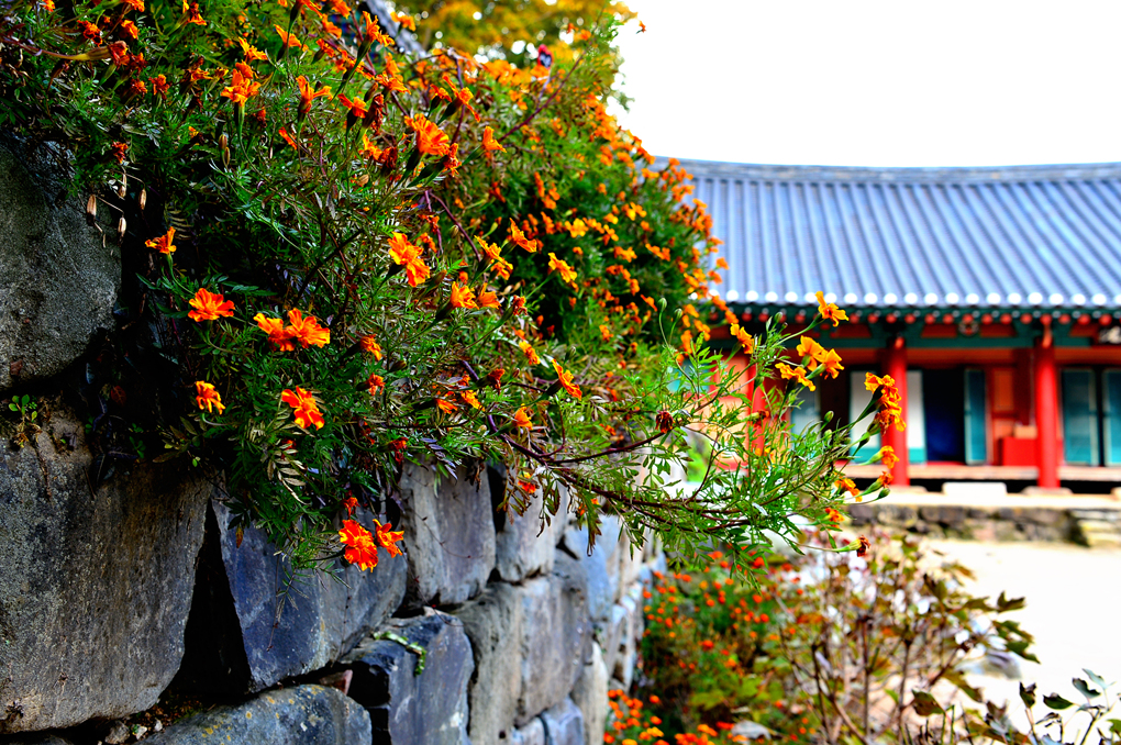 극락보전 앞 축대에 만들어진 작은 꽃밭의 아름다운 꽃들을 담아봤다.
