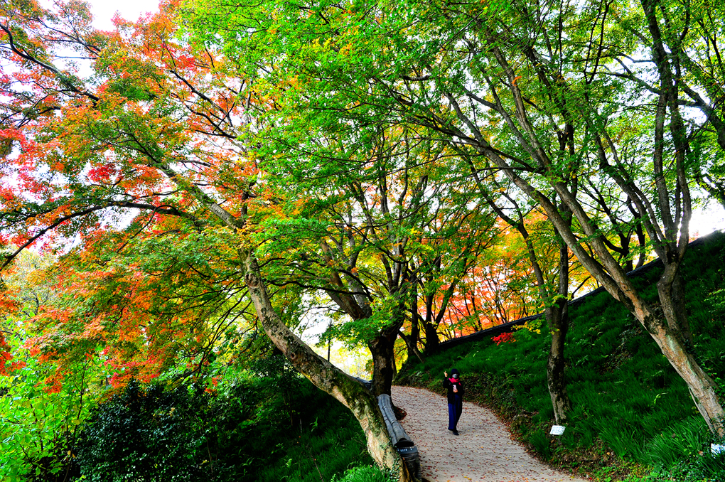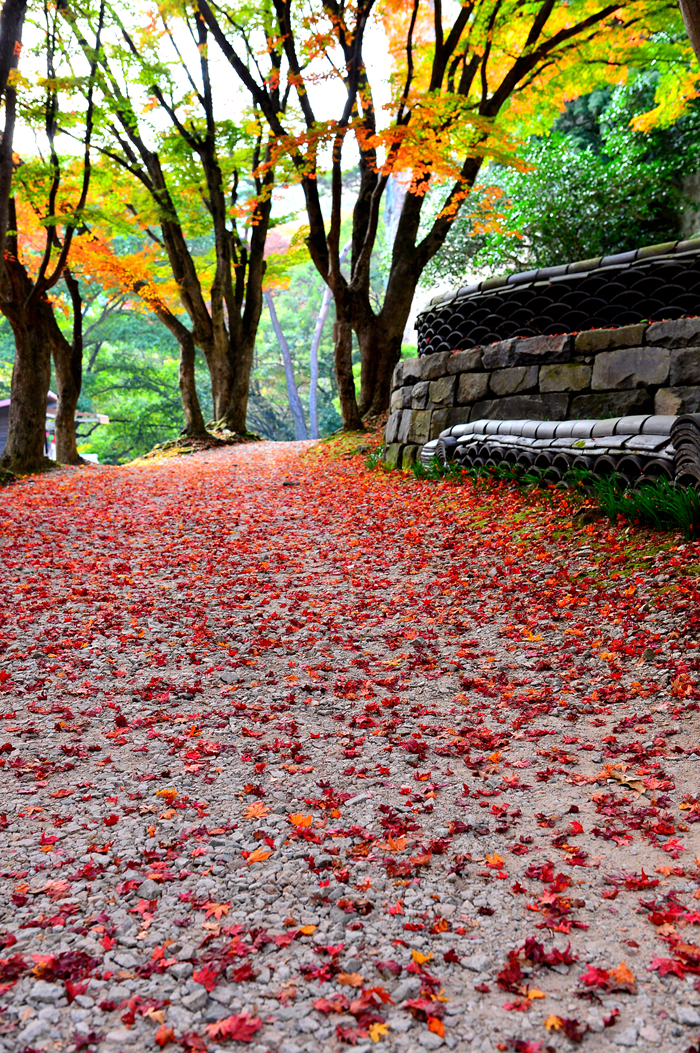 빨간 단풍 낙엽이 화사한 꽃길 못지않다.