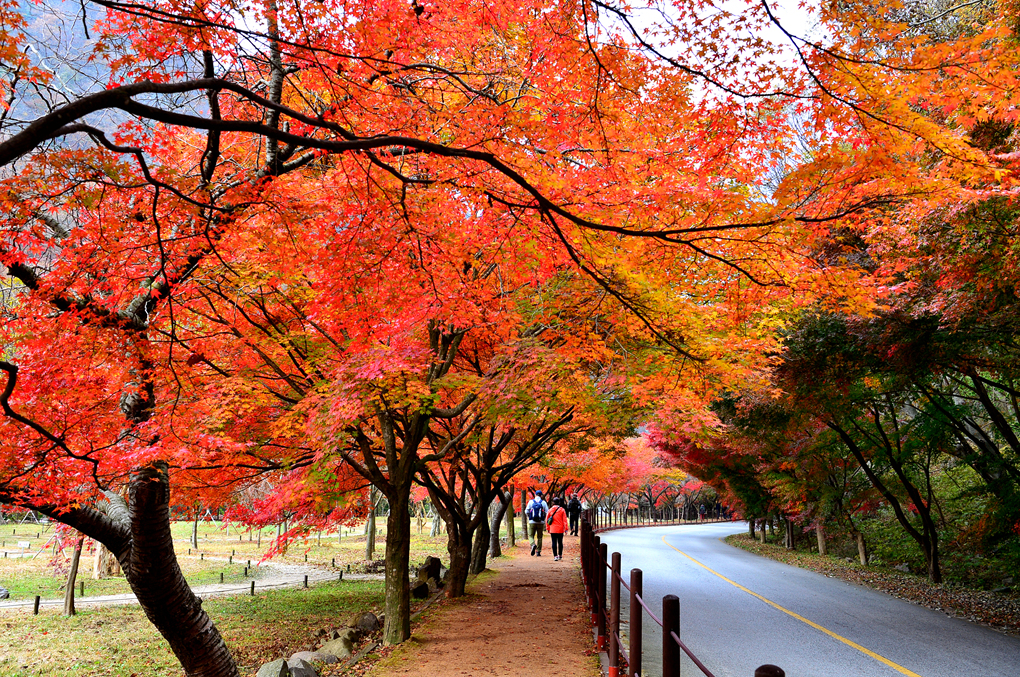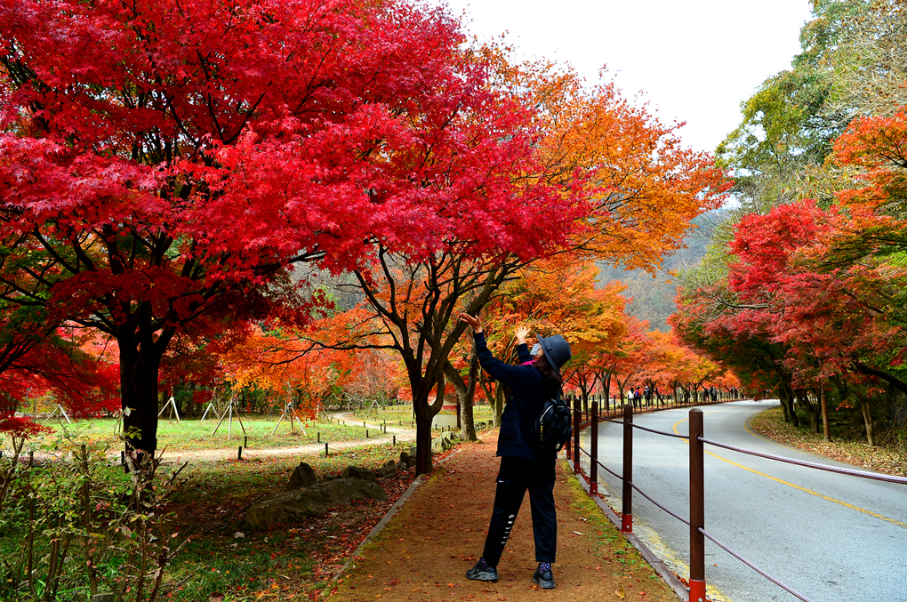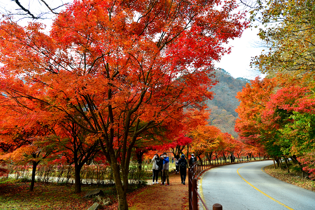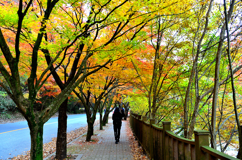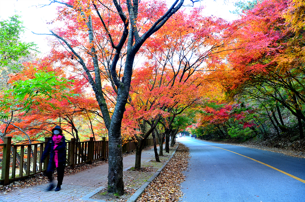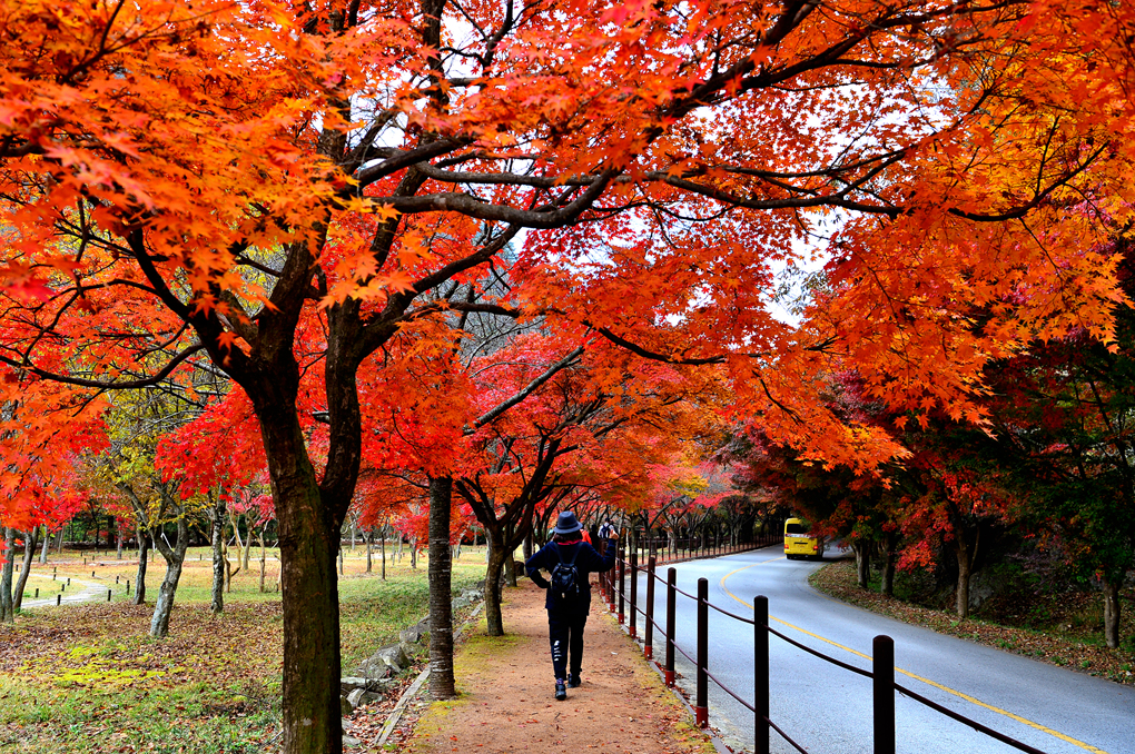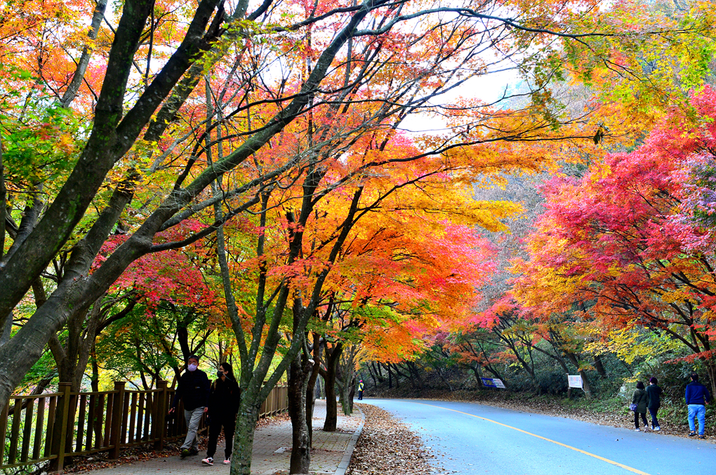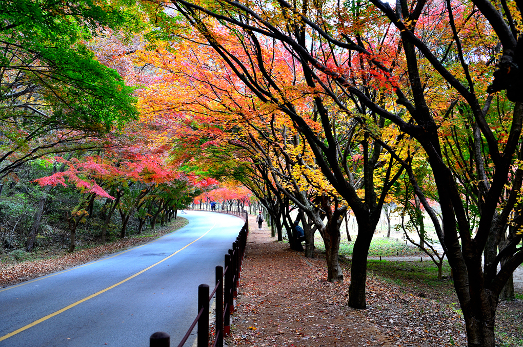 도로변으로는 아름다운 단풍나무들이 늘어서 있어 마치 단풍 터널을 연상케 한다.