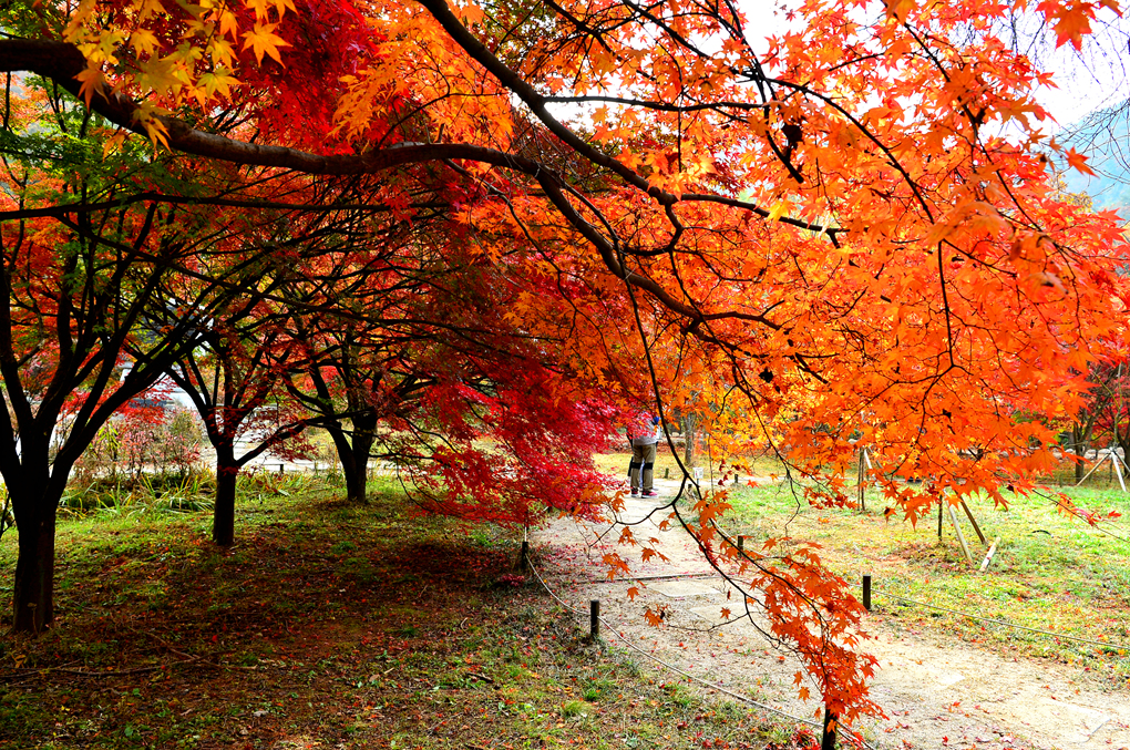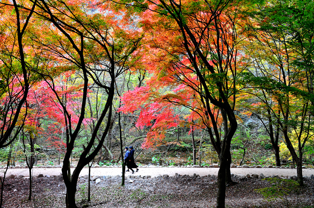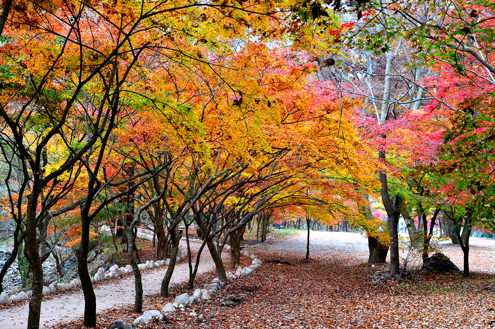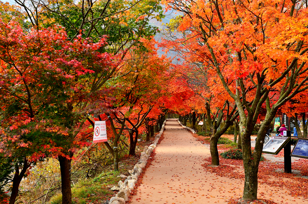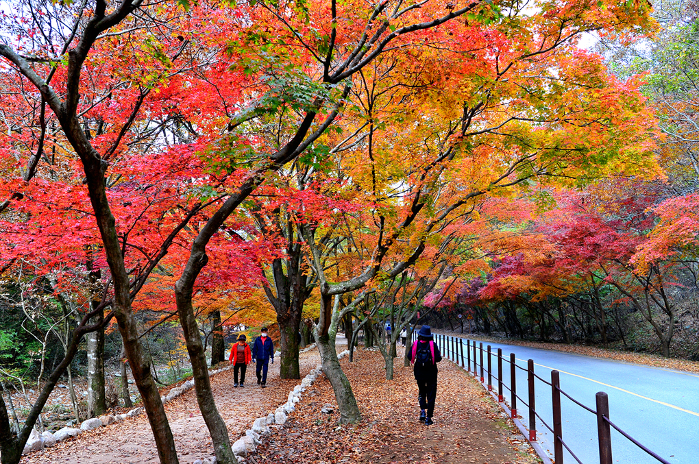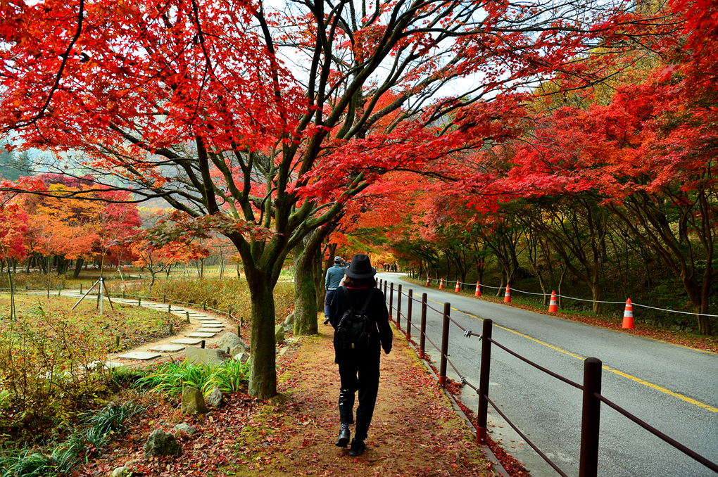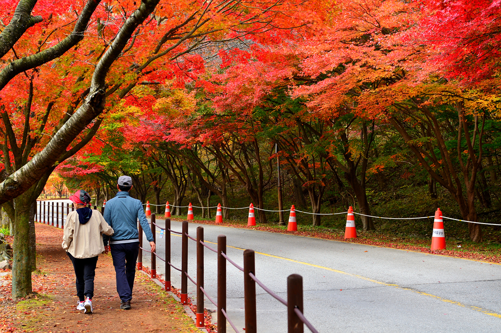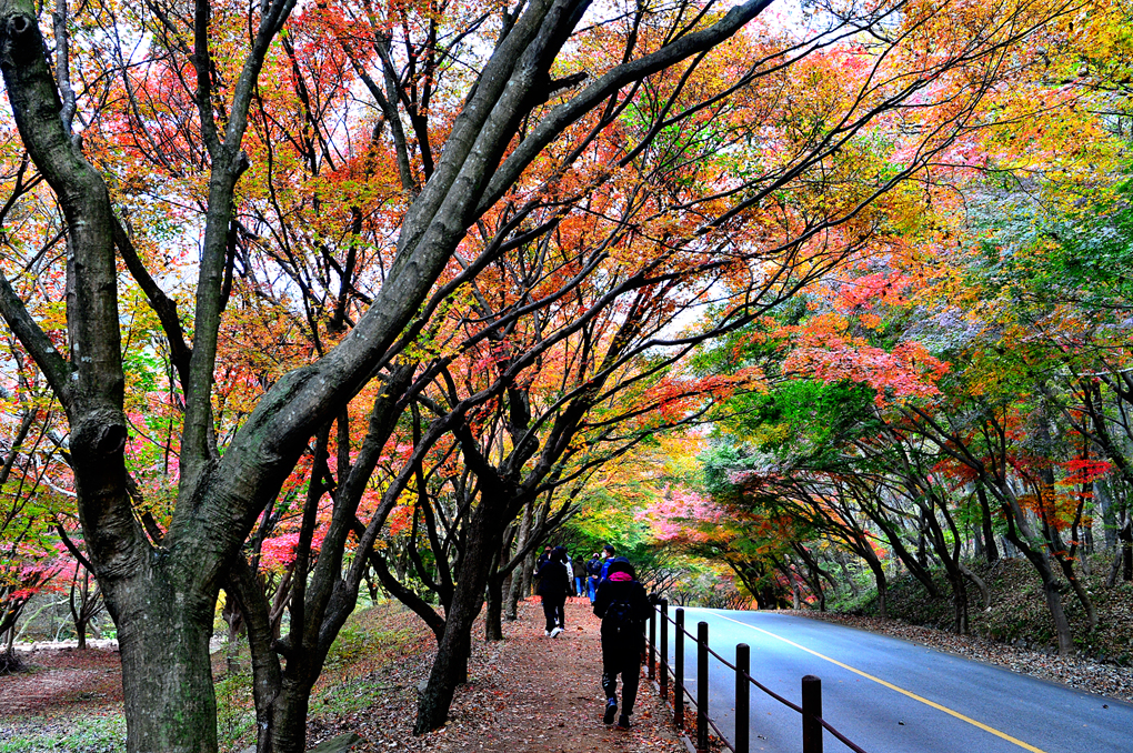 도로변으로는 아름다운 단풍나무들이 늘어서 있어 마치 단풍 터널을 연상케 한다.