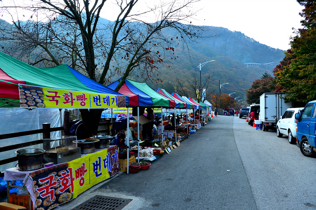붉은 단풍과 함께 도로를 가득 메운 인파들 모습이었다.