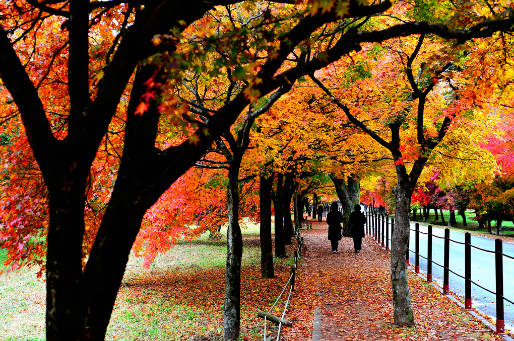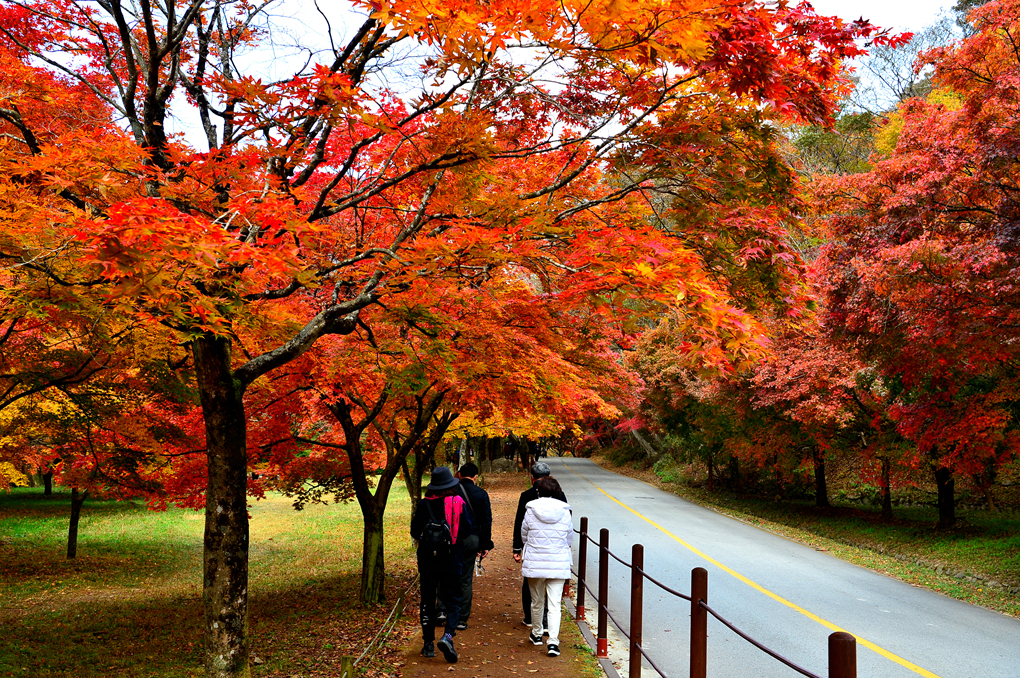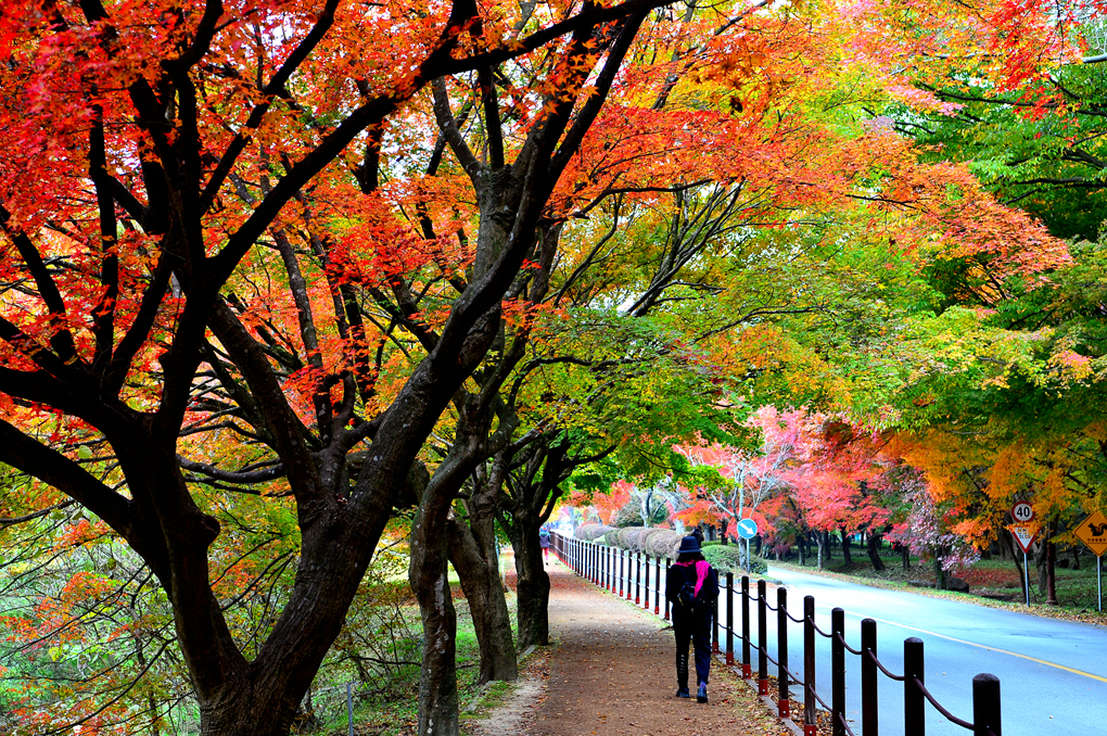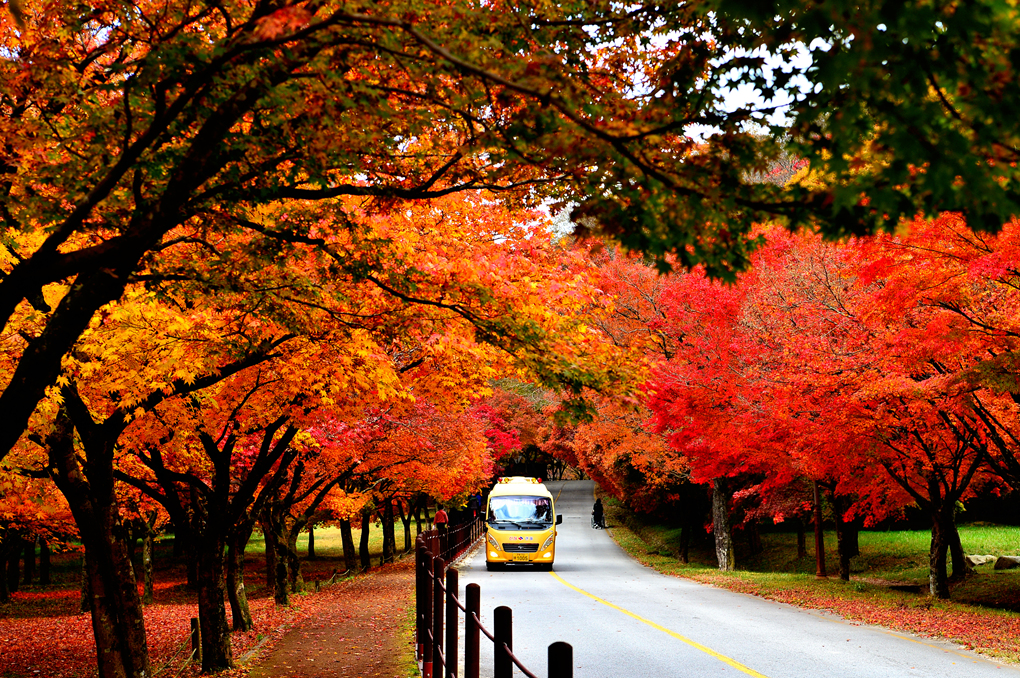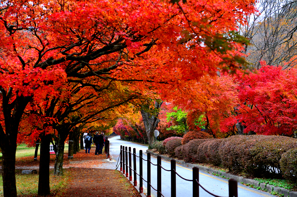도로변으로 울창한 단풍나무들이 도열해 있다.