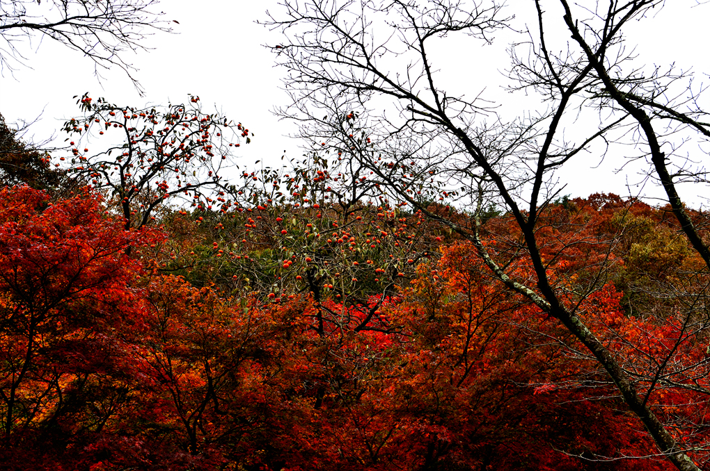 앙상한 감나무의 감들도 단풍이 되어 있다.