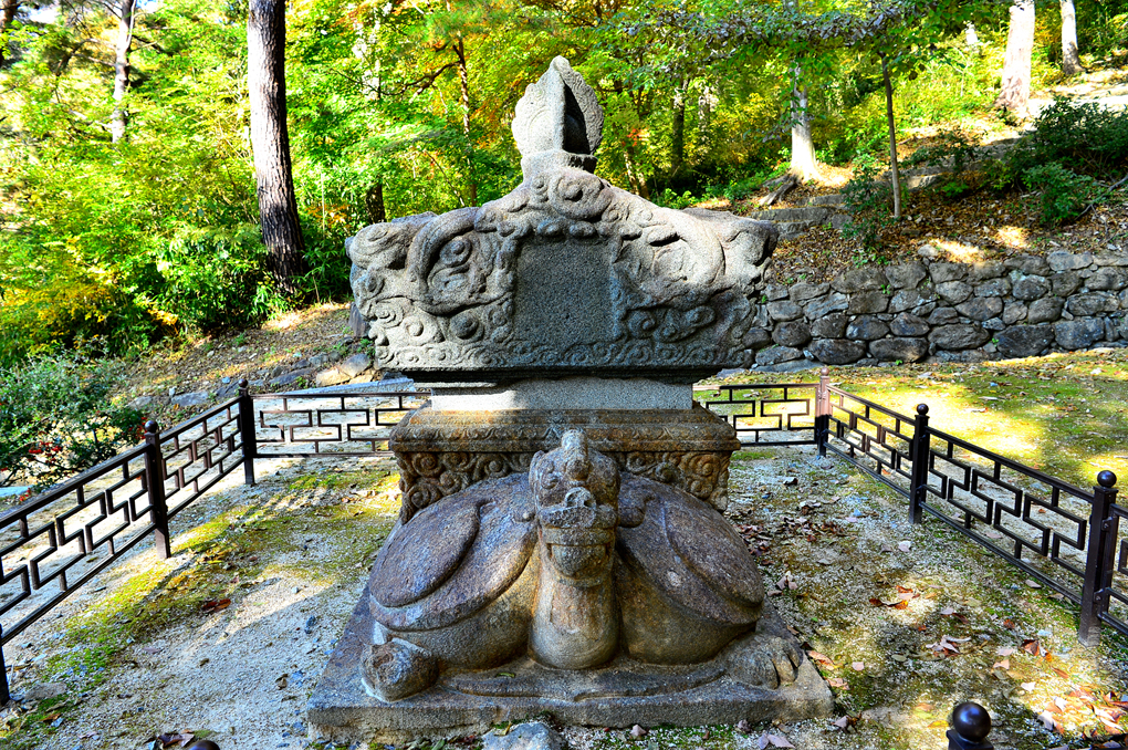 비석은 없어지고 받침돌과 머릿돌만 남아 있는~