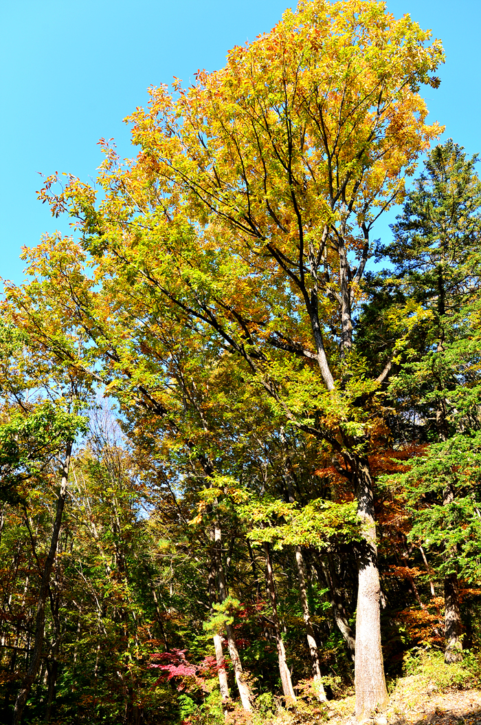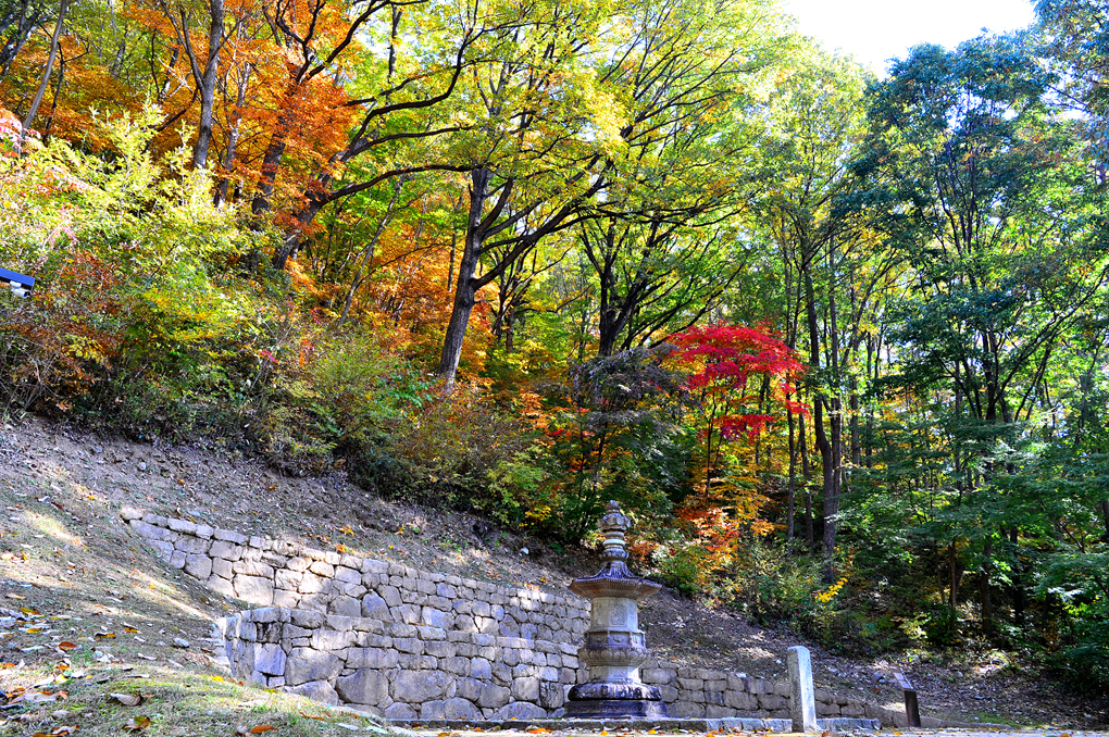 북 승탑 뒤의 커다란 갈참나무도 노랗게 물들어 있다.