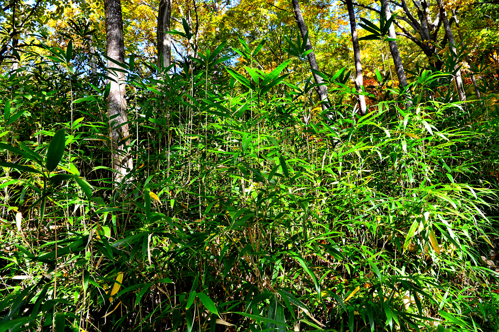 가늘게 뻗어 오른 산죽이 앙증맞다.