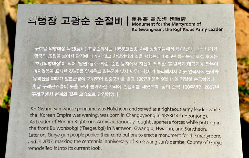 의병장 고광순 순절비 모습이다.