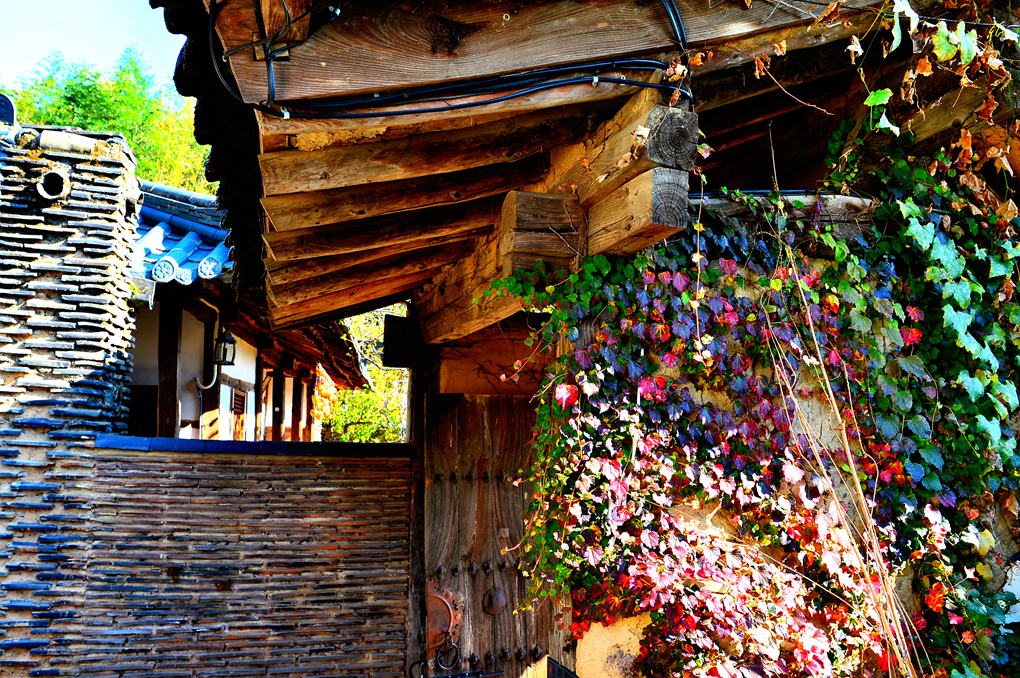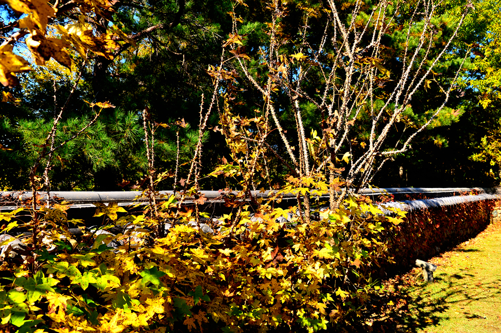담장을 타고 오르던 담쟁이가 울긋불긋 아름다운 단풍으로 물들어 가을 정취를 물씬 느끼게 해 준다.