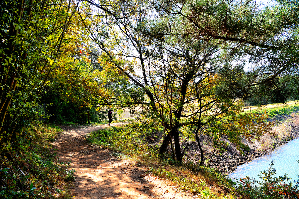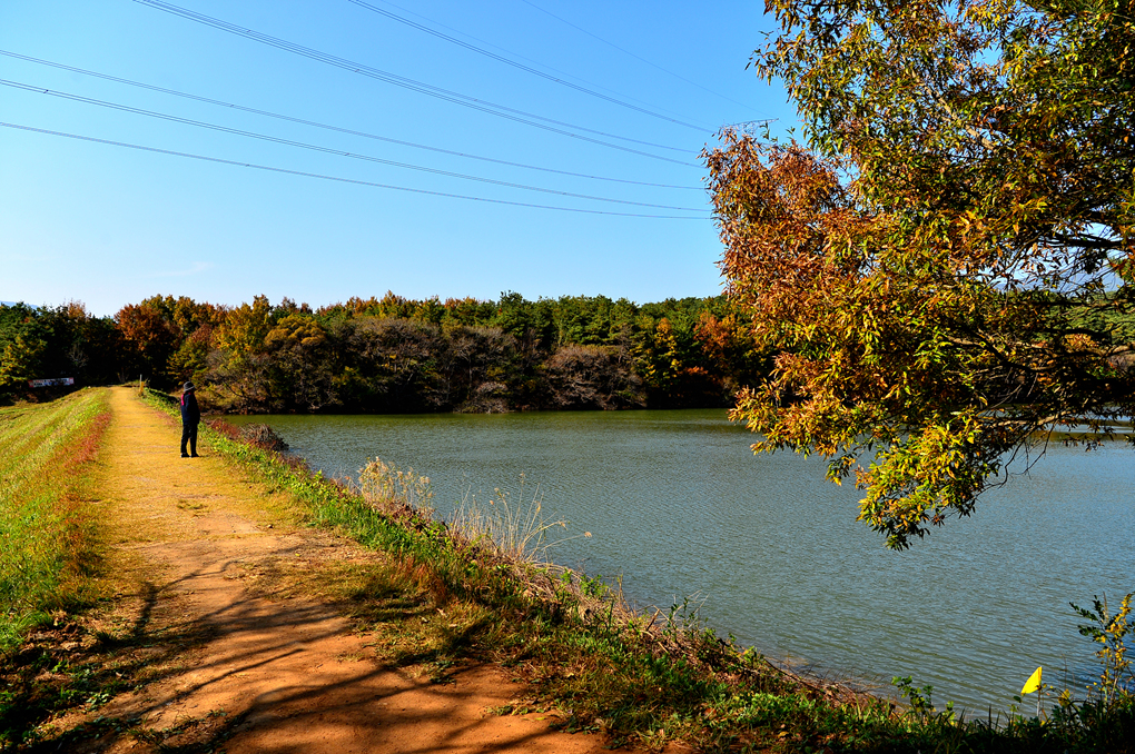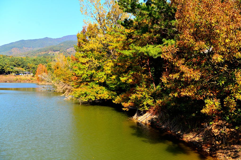 저수지 옆의 나무들도 가을 단풍으로 물들어 가고 있다.