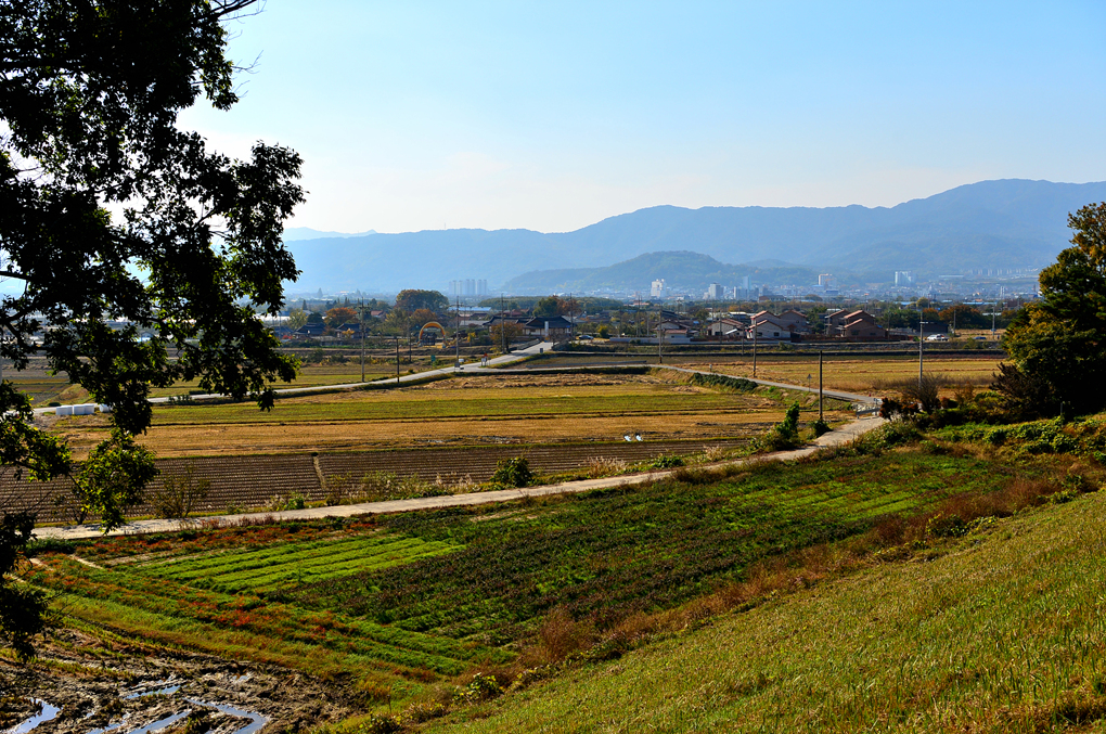 이 저수지 물로 농사를 지었을 뜰이 제법 넓게 분포되어 있다.