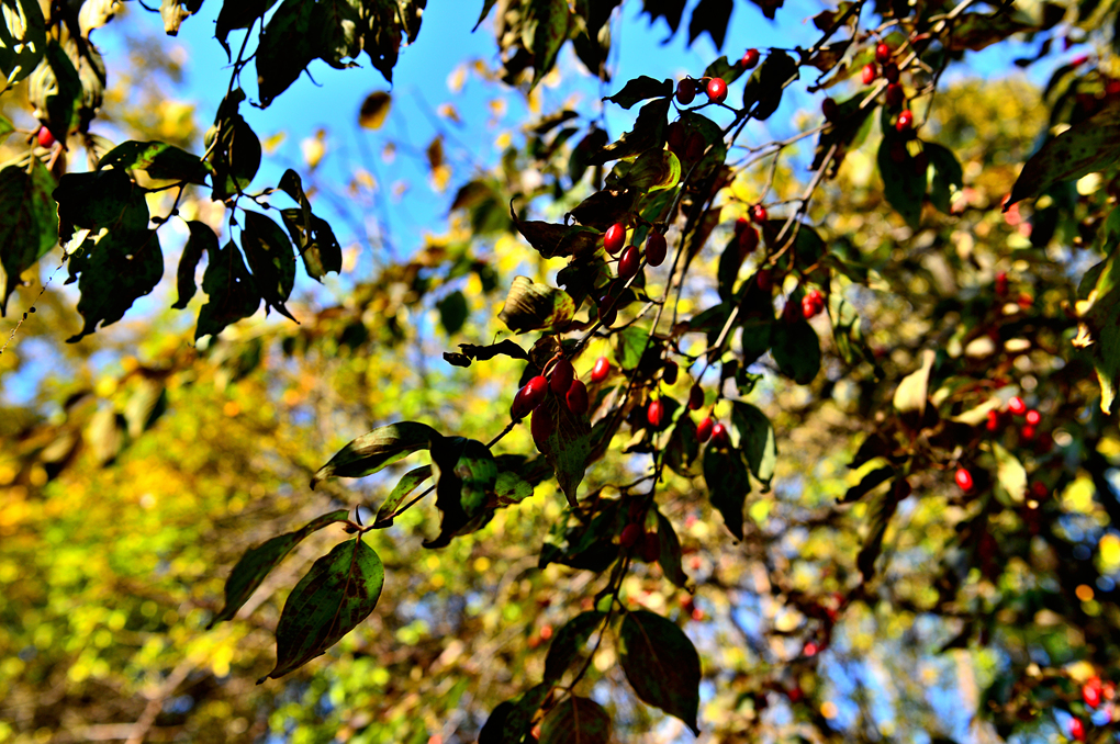 구례의 산수유 마을도 유명한데 산수유 꽃은 구경 못하고, 이곳에서 저물어 가는 가을 잎새 사이의 빨간 열매 몇 개만