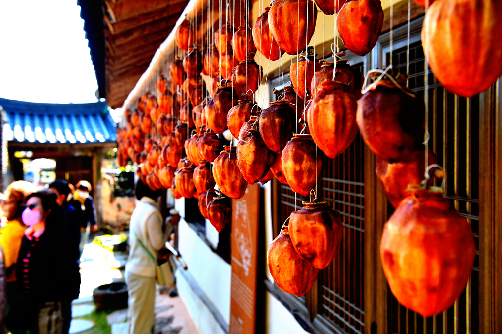 잎이 모두 진 앙상한 가지에 매달려 있는 몇 안 되는 감이 아름다운 풍경으로 다가온다.