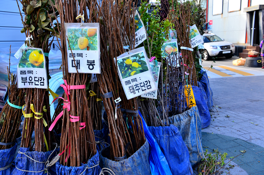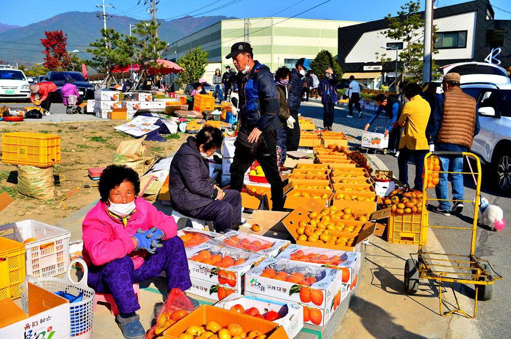 보도 위에 펼쳐져 있는 상품들의 대부분이 감이다.