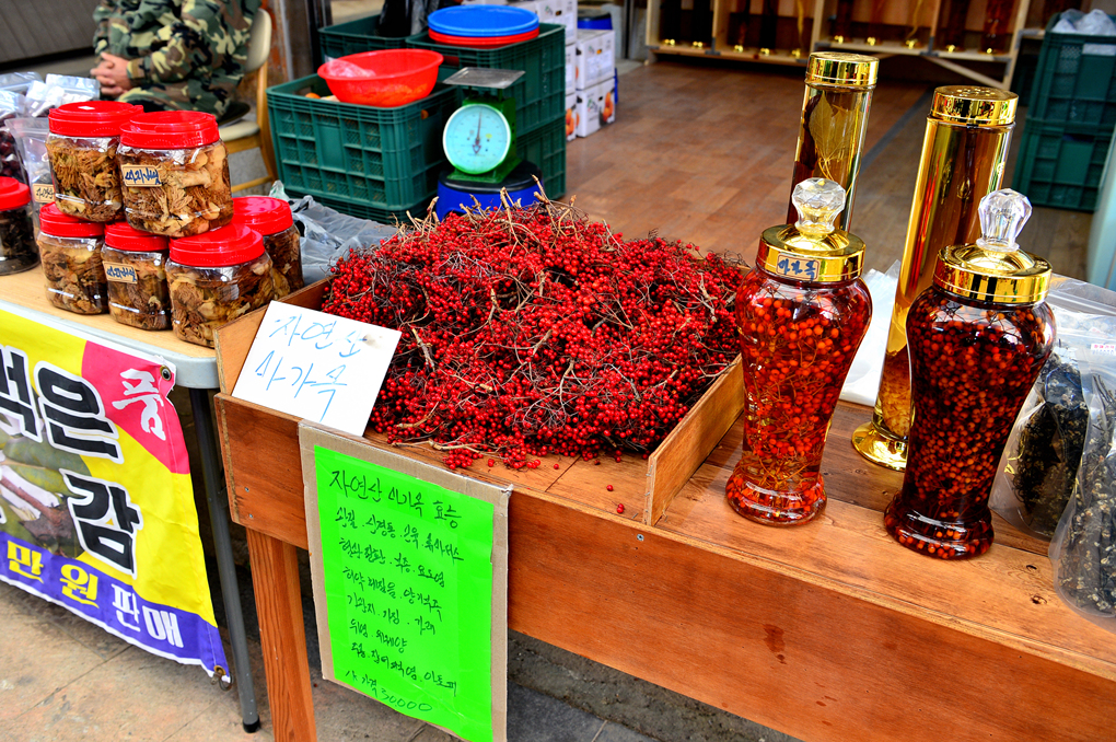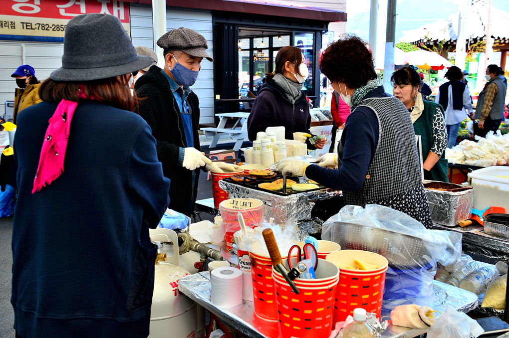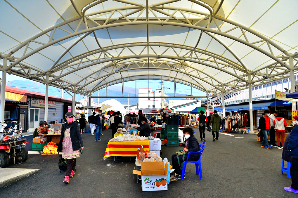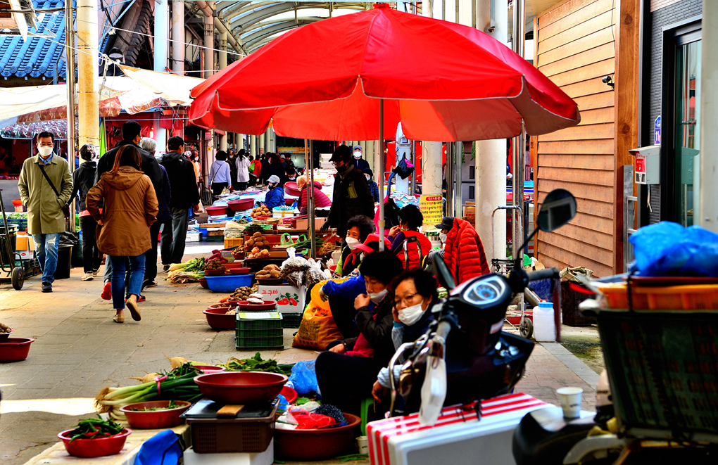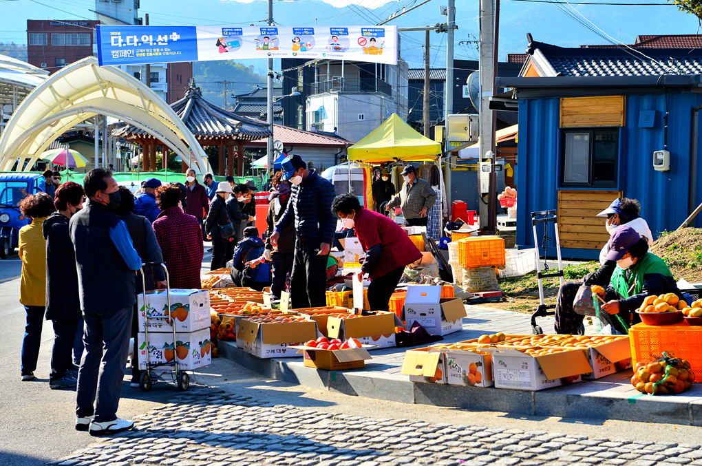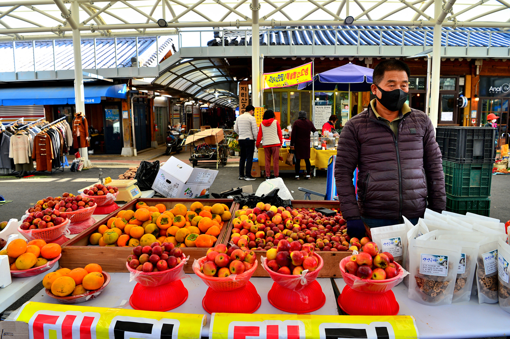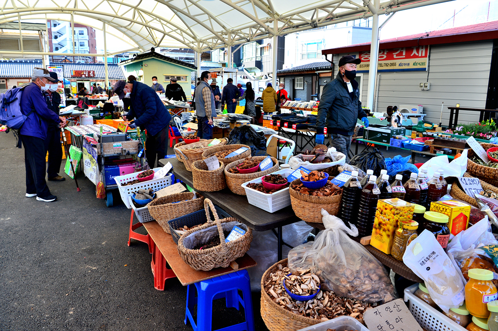 각자 생산한 농산물을 바닥에 펼쳐 놓고 손님을 기다리고 있는 아주머니들 모습이 잊고 살았던 옛 추억을 상기시켜 준다.