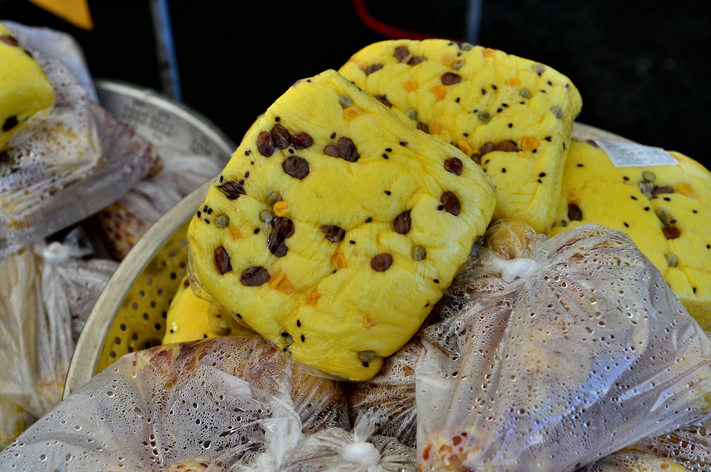 공장에서 대량 생산한 듯한 뻥튀기를 가득 쌓아 놓고 파는 곳도 있다.