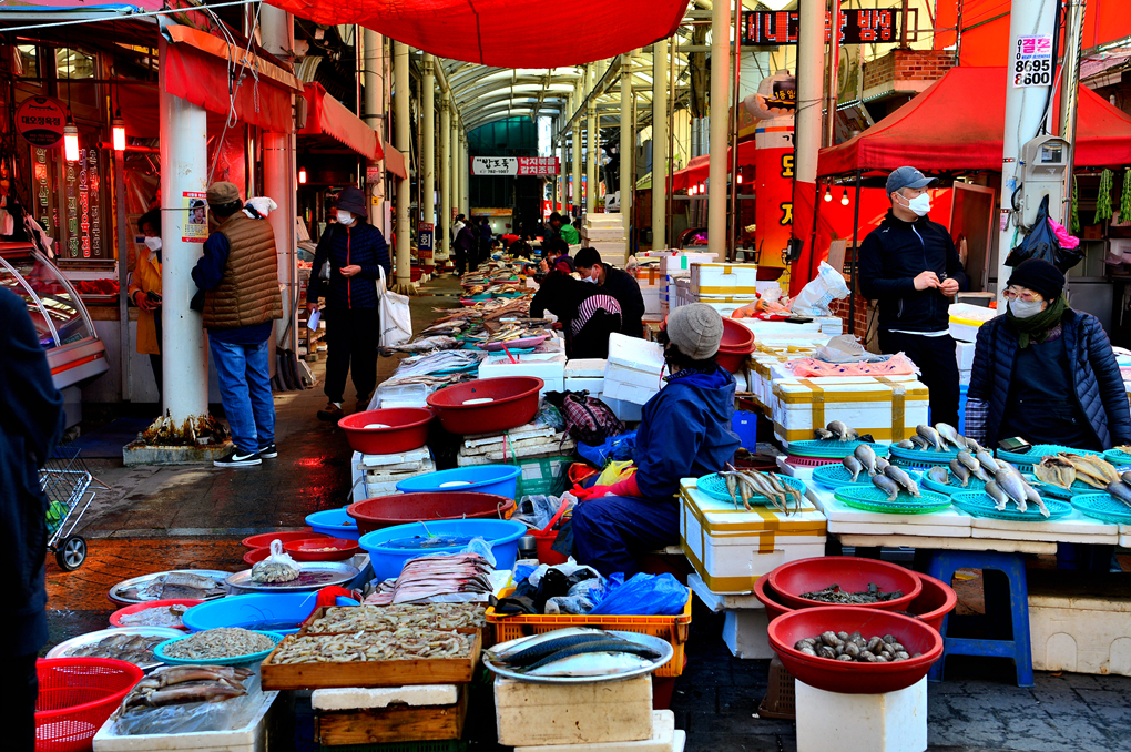 다채로운 상품들을 팔고 있는 시장 안 모습이다.