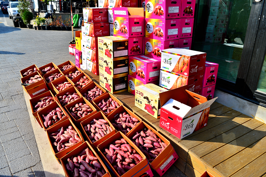 뻥튀기를 뒤로 하고 가는 길 가에 놓인 고구마가 눈길을 끈다.