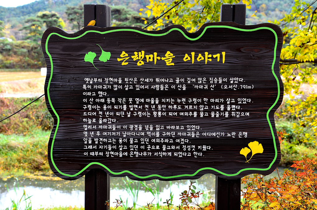 까마귀가 노란 은행 알을 여의주인 줄 알고 이곳으로 물고 와서 정성껏 키운 것이 이 마을 은행나무 유래라고~?